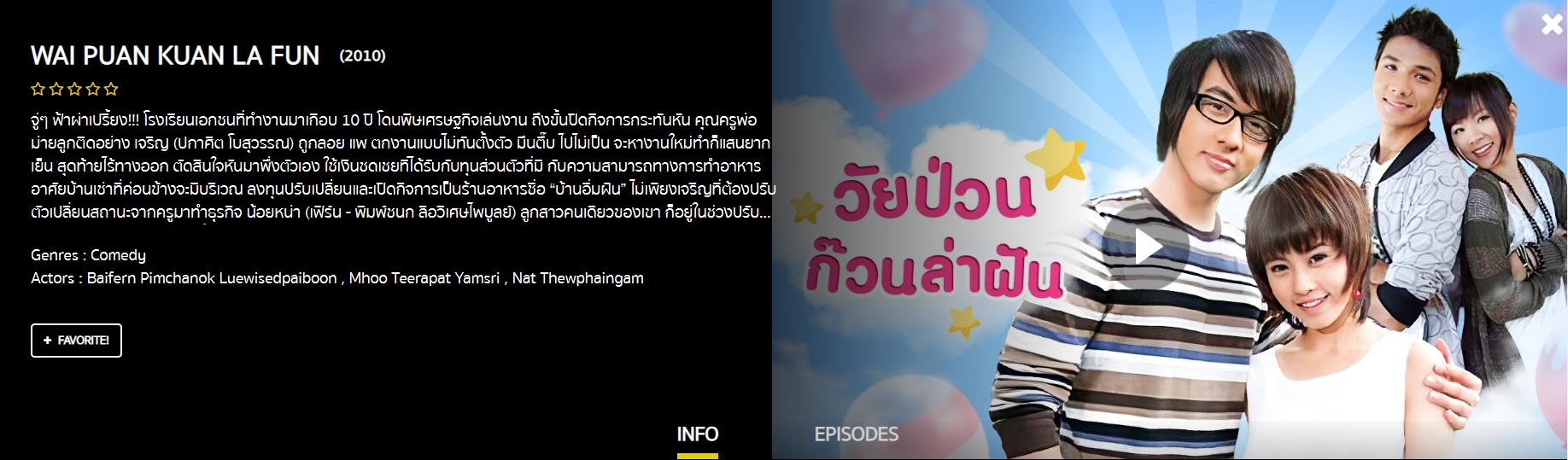 นักแสดง : ใบเฟิร์น พิมพ์ชนก ลือวิเศษไพบูลย์ , หมู ธีรภัทร์ แย้มศรี , ณัฏฐ์ ทิวไผ่งาม