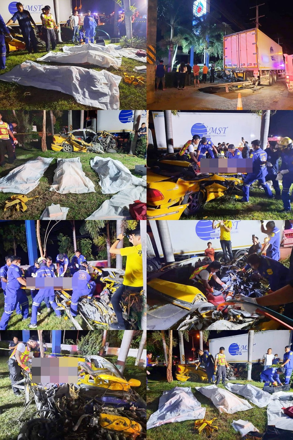 พ.ต.ท.ศุภมินทร์ ล้วนโสม สว.สอบสวน สภ.ชุมแพ จ.ขอนแก่น รับแจ้งเหตุรถเก๋งชนท้ายรถบรรทุกมีผู้เสียชีวิตหลายราย ที่บริเวณ บนถนนมลิวรรณ หน้าปั๊มแก๊ส ต.โนนสะอาด อ.ชุมแพ จึงนำกำลังรุดไปตรวจสอบที่เกิดเหตุพร้อมเจ้าหน้าที่กู้ภัย ที่เกิดเหตุบริเวณริมถนนพบรถสิบล้อตู้คอนเทนเนอร์ ยี่ห้อฮีโน่ สีขาว จอดอยู่ในสภาพด้านท้ายถูกชน ใกล้กันที่บริเวณสนามหญ้าภายในปั๊มน้ำมันพบรถเก๋ง ยี่ห้อ ฮอนด้า ซีวิค สีเหลือง สภาพพังยับ