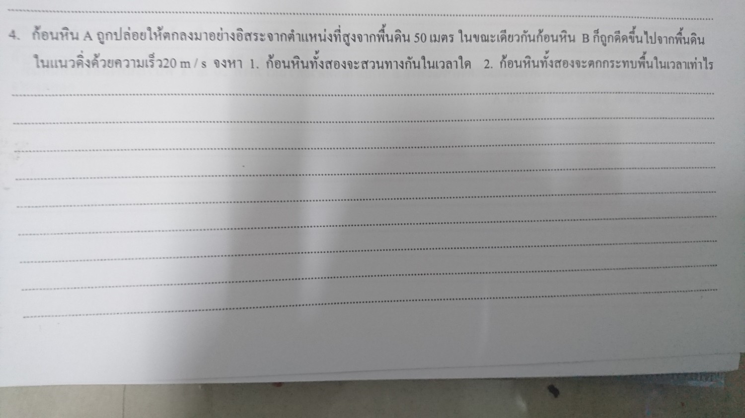 ช่วยทำโจทย์การเคลื่อนที่แนวดิ่งหน่อยครับ 1 ข้อ