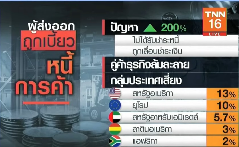 เป็นผลทำให้ผู้ส่งออกไทยบางรายขาดสภาพคล่องจากการถูกเบี้ยวหนี้หรือเลื่อนการชำระหนี้