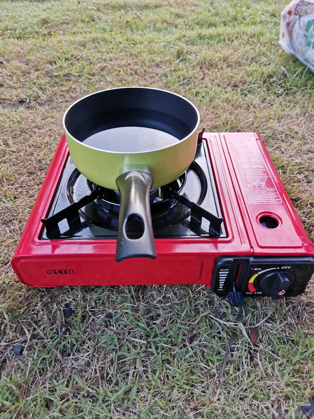 พอจะกินข้าว ข้าวที่หุงมาจากบ้านตอนเช้า บูดแล้วจร้า ดีนะที่มีข้าวสารติดมาด้วย เราเลยต้องหุงข้าวใหม่