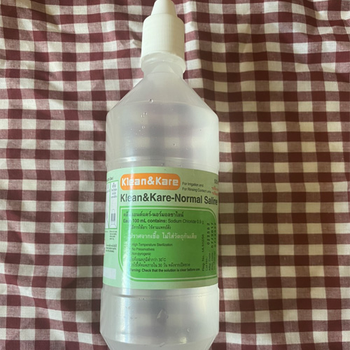 ช่วงที่แผลเลเซอร์ยังไม่หาย ยังไม่สามารถล้างหน้าด้วยคลีนเซอร์ได้เพราะมันแสบครับ และตอนนั้นผมมีปัญหากับยาทาหน้าด้วย เลยทำให้หน้าแสบไปหนักกว่าเดิมอีก ช่วงนั้นผมเลยใช้น้ำเกลือนี่แหละเป็นเหมือนตัวช่วยทำความสะอาดในระหว่างที่หน้าแสบมากๆ วิธีใช้ก็ใช้แบบโทนเนอร์เลยครับ เทลงสำลีแล้วเช็ดอย่างเบามือ(ย้ำว่าอย่างเบามือนะ) ช่วยทำความสะอาดหน้าได้ และน้ำเกลือก็เป็นการล้างแผลบนหน้าเราไปด้วยได้ในตัวโดยไม่ทำให้แสบหนักกว่าเดิมครับ