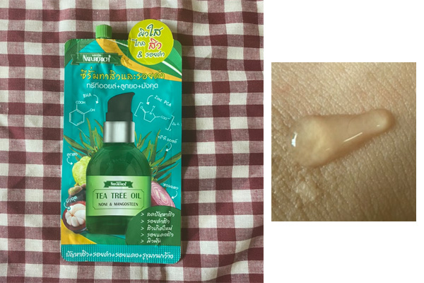 ของดีจากเซเว่นที่อยากrecommendเลย อันนี้เป็นเจลเซรั่มบำรุงผิวแบบซองที่แก้ปัญหาเรื่องสิว ทั้งลดรอยแดงสิว ลดการเกิดสิวใหม่ ลดความมัน แล้วก็เอาไปแต้มสิวใหม่ได้ด้วย แต่ผมคิดว่าซองนี้ลดรอยแดงได้ดีที่สุดล่ะ ไม่กัดหน้าอีกต่างหาก ผมใช้ด้วยการเอามาทาทั่วหน้าบางๆก่อนนอนทุกวัน เนื้อเจลจะบางๆเบาๆซึมง่าย ออกเย็นๆด้วย คนแพ้ง่ายใช่ได้เพราะไม่มีแอลกอฮอล์ น้ำหอม สี และซิลิโคน แต่มีกลิ่นทีทรีออยล์ชัดเจนมาก ดูเป็นเซรั่มสมุนไพรจริงๆ ผมชอบกลิ่นนะมันผ่อนคลายดีครับ เห็นผลจริงแนะนำๆ