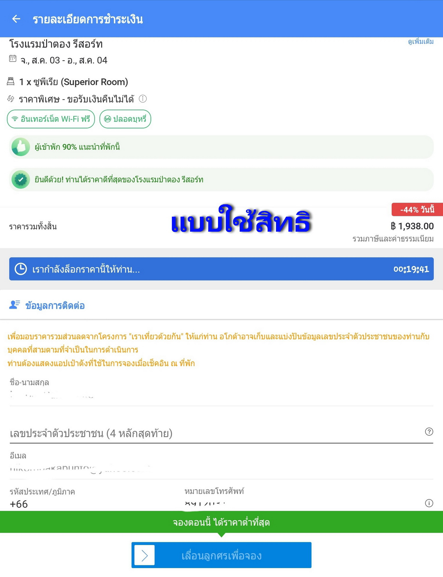 เราเที่ยวด้วยกัน ตัวอย่าง ราคาห้องพัก โครงการ สูงกว่า แบบไม่ใช้สิทธิ