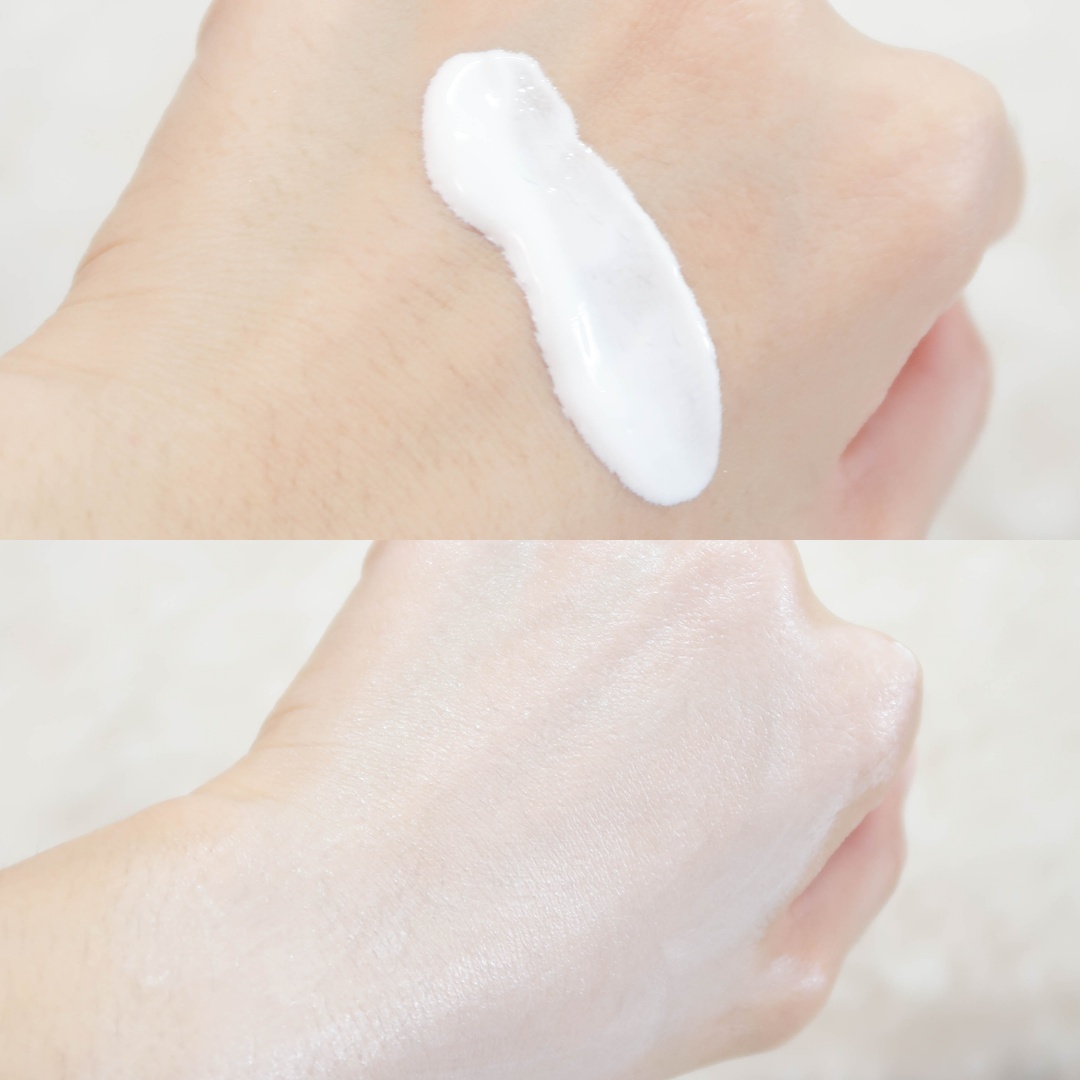 จะสังเกตได้ว่าผิวจะดูกระจ่างใสขึ้น ทาแล้วแบบไม่มีความวาว ทาแล้วผิวไม่ทันแต่ผิวจะอิ่มฟู ฉ่ำนิดๆ เพราะว่าตัวนี้เค้ามีไฮยาลูรอน วิตามิน B3 วิตามิน E ผสมอยู่ ไม่มีพาราเบนและน้ำหอมค่ะ ผิวแพ้ง่ายใช้ได้ ตอนนี้พิ้งเองก็เลี่ยงพวกกันแดดที่มีแอลกอฮอล์อยู่เหมือนกัน T-T