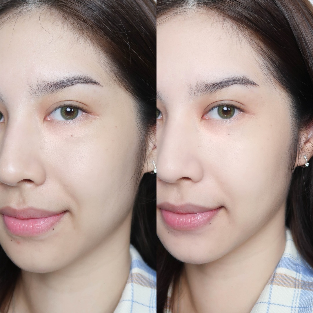จะเห็นได้เลยว่าเป็นกันแดดที่ช่วยปรับสีผิวให้ดูดีขึ้น 1 step ผิวโทนเหลืองแบบพิ้งใช้แล้วไม่วอกนะ