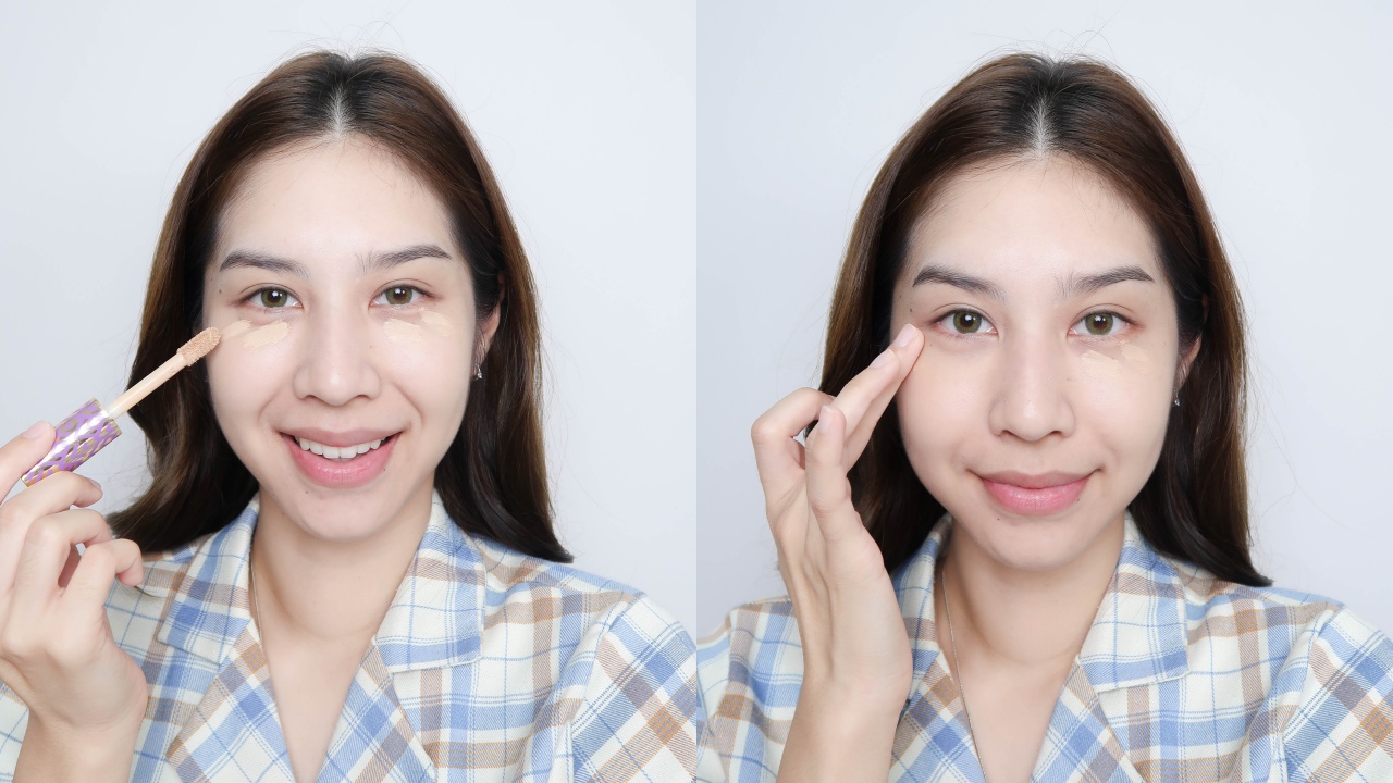 สำหรับวันนี้พิ้งจะใช้กันแดดคอสลุคส์แค่ตัวเดียวกับผิวหน้า (ขอไม่ใช้รองพื้นนะคะจะได้ดูเลยว่ากันแดดคุมมันมากน้อยแค่ไหน) แล้วใช้คอนซีลเลอร์กลบแพนด้าเล็กน้อยค่ะ