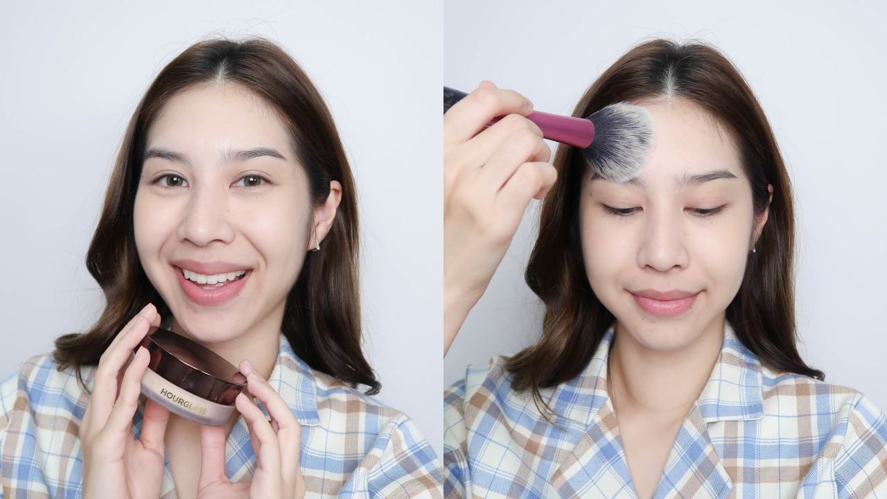 เซททุกอย่างด้วยแป้งฝุ่นของ Hourglass แล้วก็แต่งหน้าตามปกติแบบทุกวันเลย