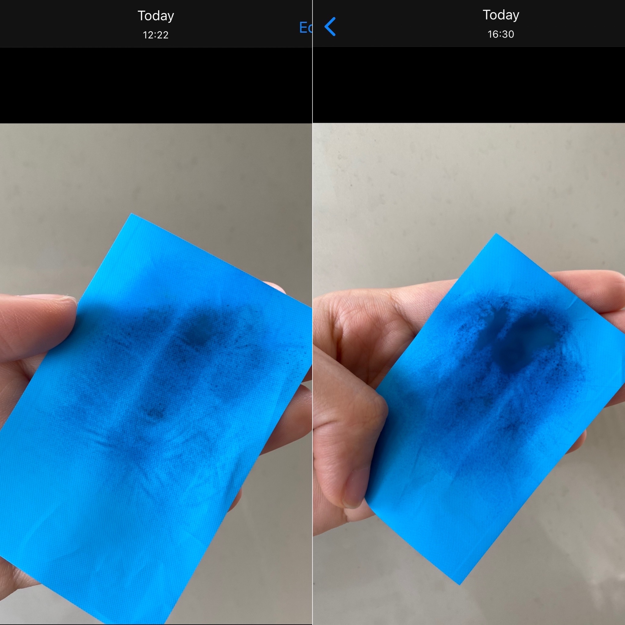 ที่นี้มาดูเรื่องความมัน ครีมกันแดดถือเป็นเบสอีกตัวของผิวที่สำคัญมากเลยนะคะ เพราะถ้ามันเกิน ก็ทำให้เครื่องสำอางหลุด ผิวเยิ้มไปอีก พิ้งเลยทดลองบ้านๆ ให้ดูก่อนว่า เรื่องความมันของกันแดดตัวนี้ แค่ตัวเนื้อผลิตภัณฑ์มีน้ำมันอยู่มากน้อยเท่าไหร่ ตามภาพที่ทุกคนเห็นเลยค่ะ ว่ามีส่วนเกินน้ำมันออกมารอบกรอบนอกแค่เล็กน้อยเอง ถ่ายมาให้ดูถึงแค่ 5 ชม. แรก ก็ยังคงอยู่ใน area เดิม แสดงว่าน้ำมันไม่ได้มีมากมายเลย