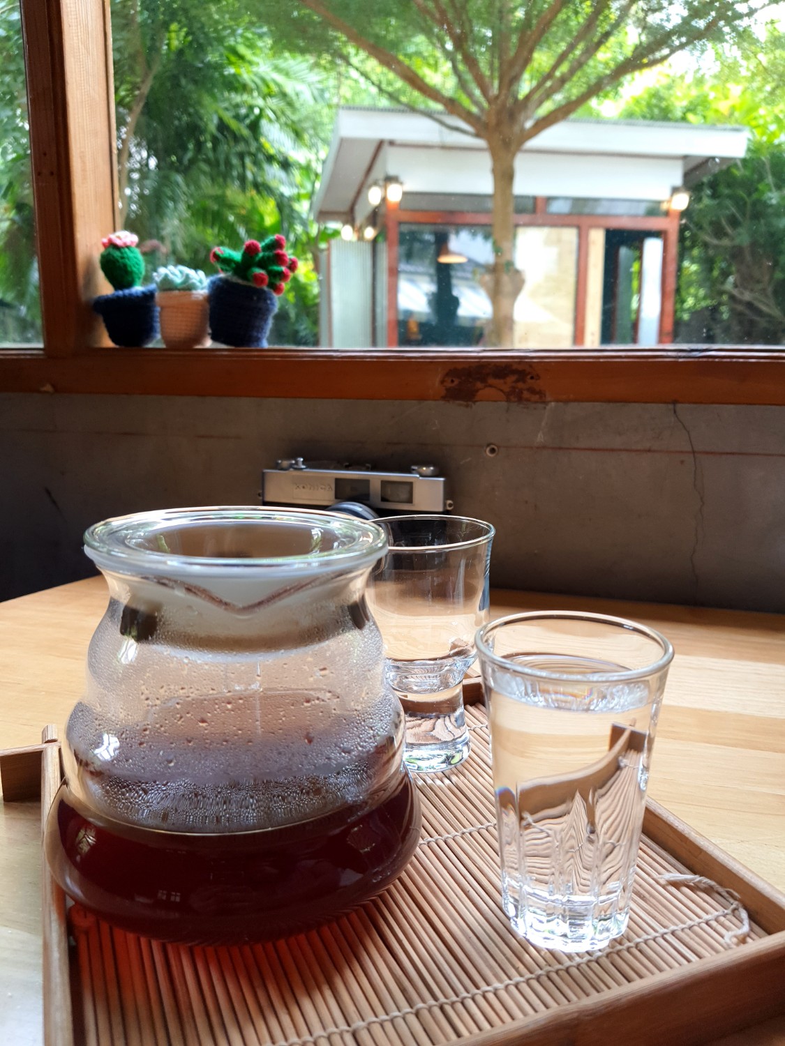 ของกินที่นี่ราคาไม่แรงมาก อย่างละสามสิบบาทเท่านั้น ปริมาณก็ให้มากำลังดี ไม่อิ่มแน่นจนเกินไป ชอบหมูแดงมากๆเพราะหอมควันเตามเนื้อนุ่ม ซอสหวานๆเหนียวๆ อร่อยล้ำจริงๆ เสียใจมากที่มาแล้วไม่ได้สั่งหมูสเต๊ะที่หลายรีวิวบอกว่าเด็ด เพราะกลัวจะกินไม่หมด หลังจากหนังท้องตึงเราก็คิดว่าจะเดินเที่ยวชุมชนริมน้ำจันทบูร เราก็เปิด Map ขึ้นมาแล้วก็เดินวนๆๆ ผิดๆถูกๆ แต่เป็นความงงๆที่ปนด้วยความโชคดี สุดๆเพราะเราเดินหลงไปเจอร้านแกแฟเล็กๆ ชื่อว่า "ร้านเล็กๆในซอยลึกลับ" เป็นร้านที่ตกแต่งได้น่ารัก minimal มากๆ บรรยากาศดีเงียบสงบ เจ้าของร้าน ชงกาแฟอร่อย ถูกคอ จขกท. มาก เป็นคอกาแฟสายดริปเหมือนกัน ได้เห็นความพิธีพิถันในการชงกาแฟแต่ละแก้วแล้ว คิดว่าคุ้มค่าคุ้มราคามากๆๆๆ