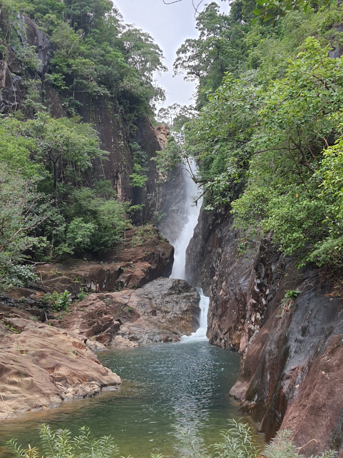 .... เมื่อเรารู้สึกผิดกับการกินแบบจัดเต็มมาตั้งแต่เช้า เราก็เลยขอไปเดินย่อยที่น้ำตก คลองพลู ซึ่งอยู่ห่างจากร้านภูทะเลแค่ 2 กม. เดินเพลินๆ 500 เมตร ทางไม่ลำบากมากเราก็จะมาถึงจุดสูงสุดของน้ำตกที่นี้ เป็นบรรยากาศที่สดชื่น สวยงาม น้ำใส มาก และเพื่อเป็นการพิสูจว่าน้ำใสไหลเย็นแค่ไหน เราก็ไม่รอช้า อีก ยี่สิบนาทีอุทยานจะก็จะปิดแล้ว เราก็หามุมเหมาะๆ เอาพุงและไขมันที่สะสมมากระโจนใส่น้ำตกในทันใด สดชื่นถึงใจ ดื่มน้ำไปสามอึก เย็นสดชื่นจนลืมสระว่ายน้ำที่โรงแรมไปเลย นี่แหละนะ ที่เค้าเรียกว่าร่างการโหยหาธรรมชาติ มันเป็นอย่างนี้นี่เอง * ^