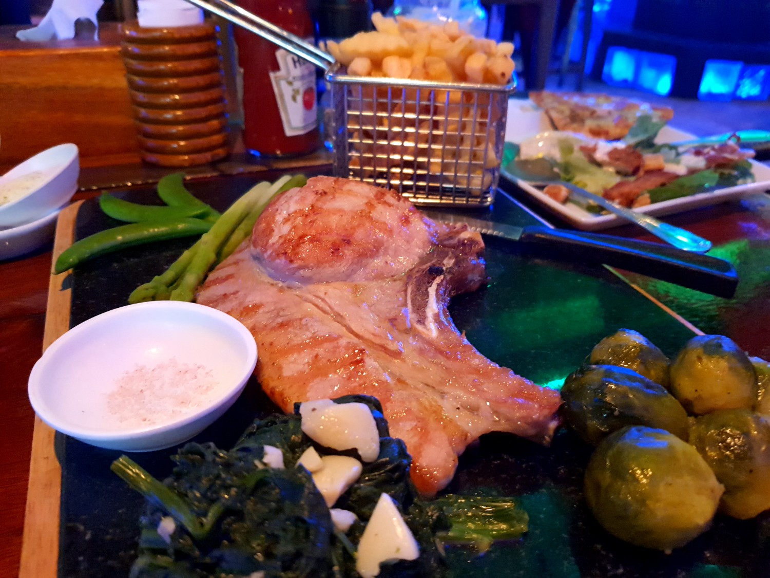 แต่เดี๋ยวก่อน ถ้ากลางดึกล่ะหิวจะทำยังไง เมื่อนึกได้พอฝนหยุดสองทุ่มเราก็คว้ามอเตอร์ไซค์ ไปตระเวนกินยามค่ำคืนแถวไก่แบ้ เดินวนไปวนมาก็ได้ร้าน สั่งเมนูกรุบกริปๆๆ พิษซ่า เสต๊ก และสลัด เบาๆๆ บรรยากาศเย็นๆหลังฝนตก ก็จะโรแมนติกดีนะ