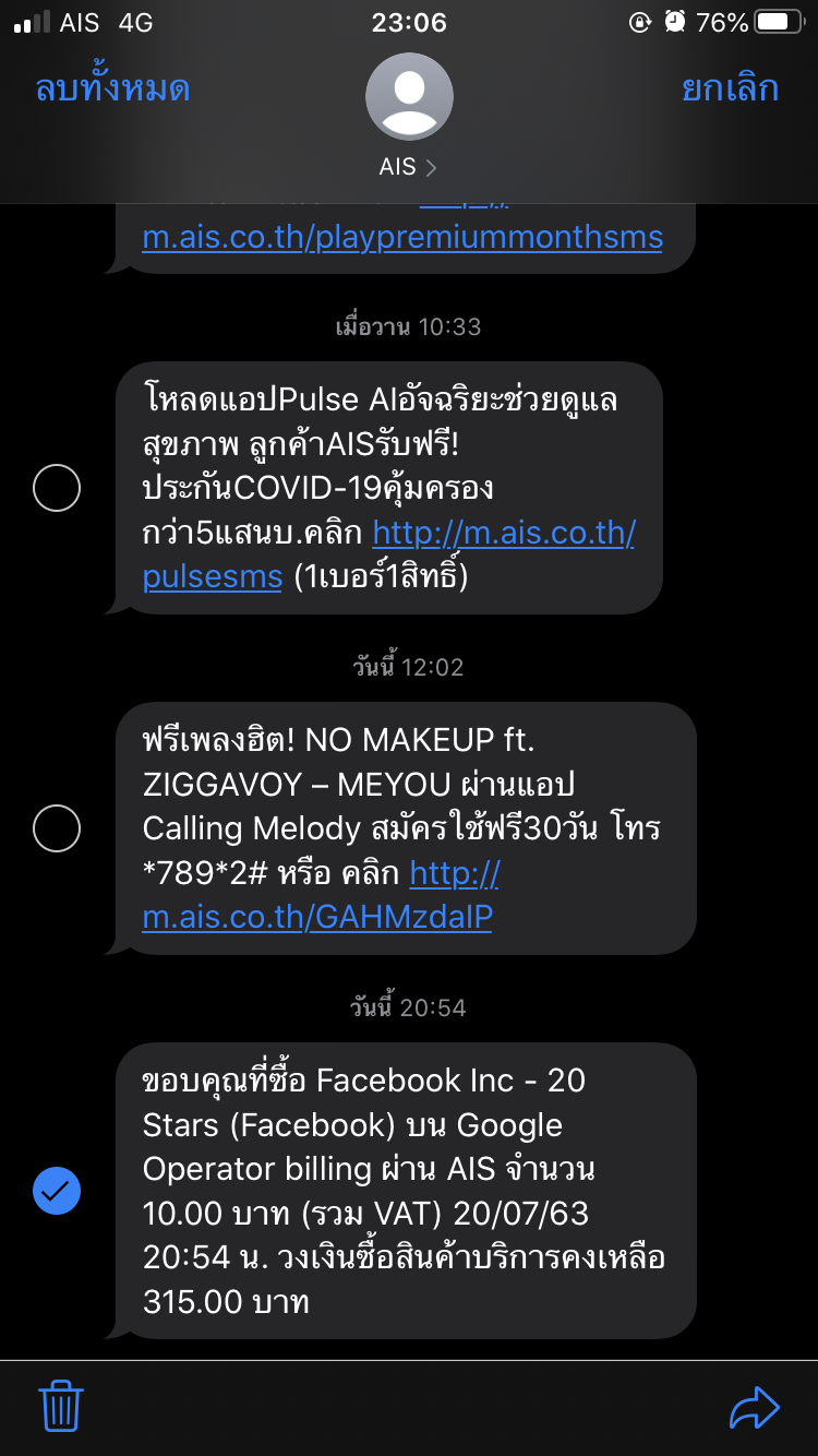 ต้องยกเลิกบริการที่เราไม่เคยใช้อย่างไรคะ ข้อความจากais