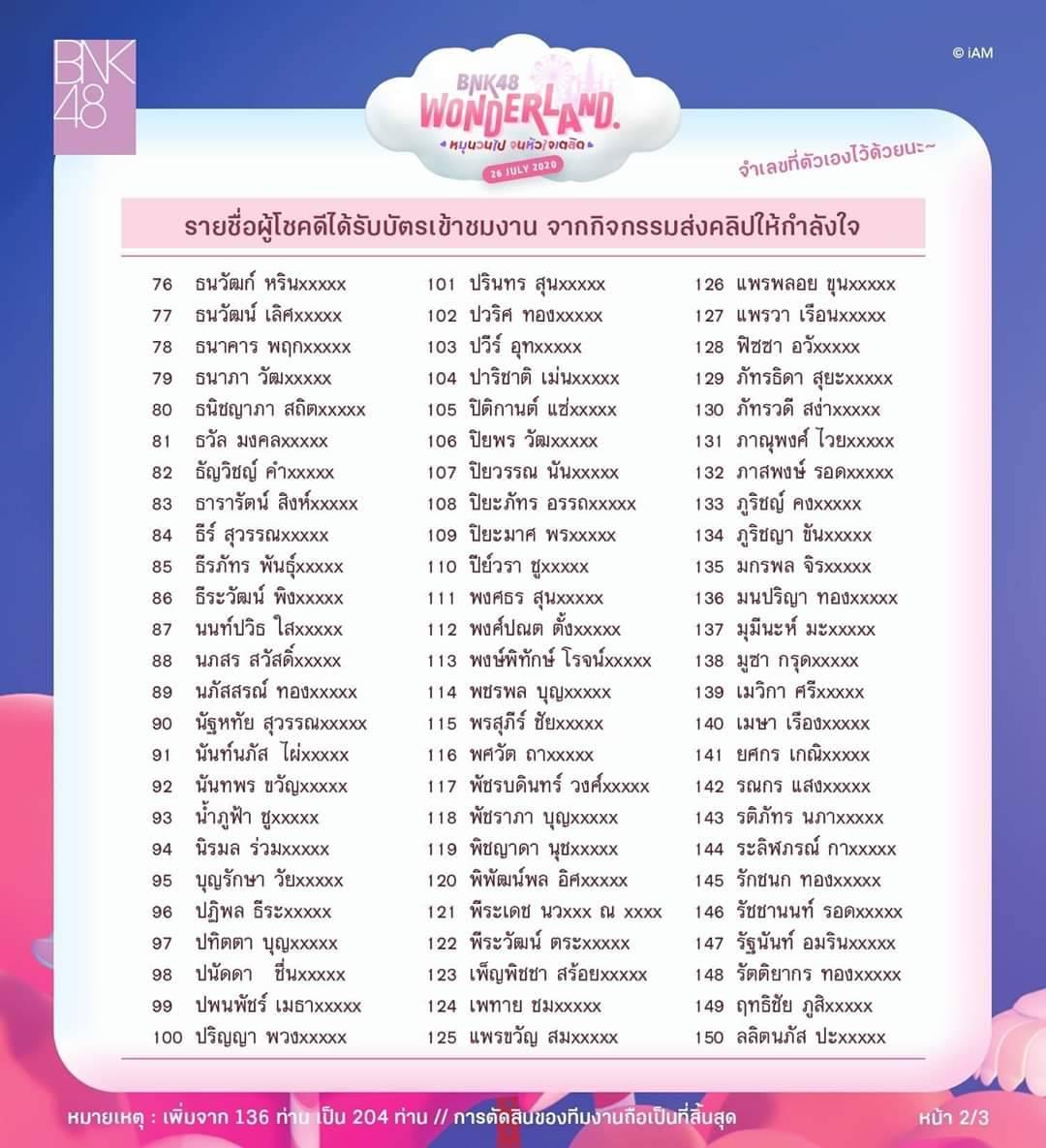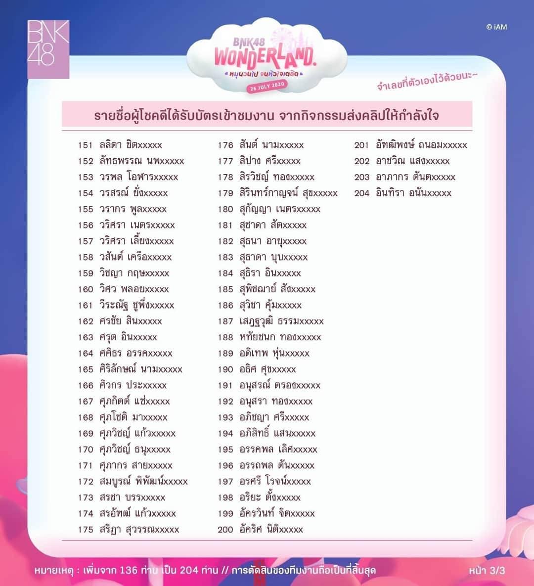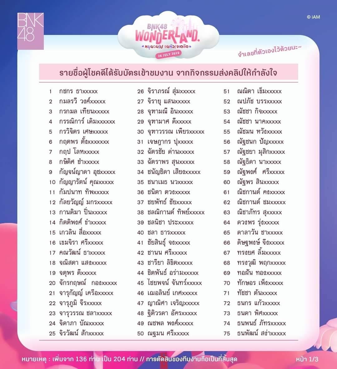 ประกาศคนได้เข้างาน (BNK48wonderland) งานมอบโล่, งานเปิดตัวซิง9