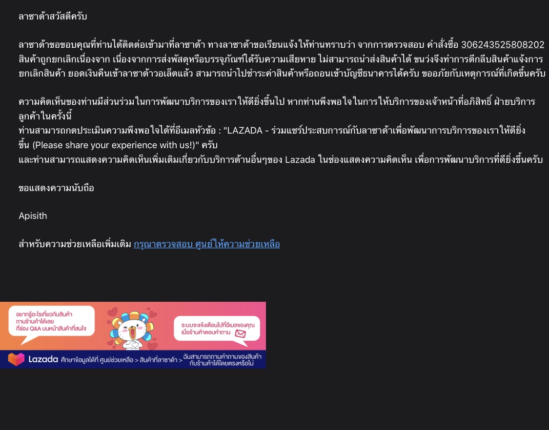 สั่งซื้อทีวี Hisense 65EU8F Pre-order ช่วง Mid year sale ของ Lazada รอของมาเป็นเดือน อยู่ๆ ร้านค้ายกเลิกแถมยังโบ้ยว่าลูกค้ากดยกเลิกเอง ทั้งๆที่เราไม่ได้กด ใครที่กำลังรอโปรจาก Hisense อยู่ระวังเสียเวลาเปล่า ไม่รู้ว่าไม่มีของส่งหรืออะไร พอส่งหลักฐานที่ support Lazada ตอบกลับมาถึงกับเงิบหายไปไม่คุยต่อ เสียความรู้สึกมากๆ