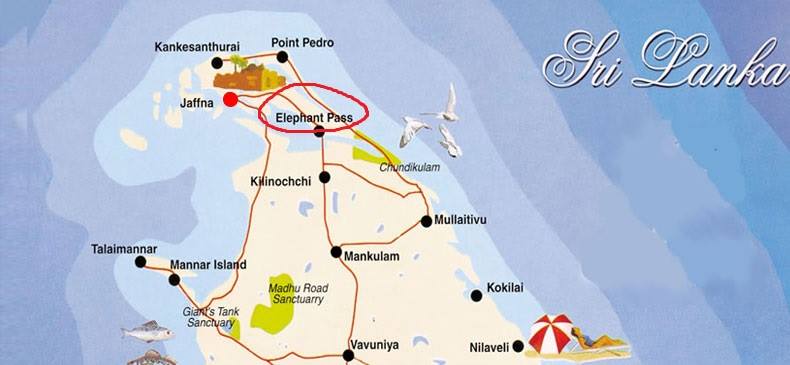 จาฟนาเป็นเมืองสำคัญ แต่มีทางเข้าทางบกหลักๆ คือเส้นทางเล็กๆ นี้ ทางช้างจึงเป็นจุดยุทธศาสตร์ที่รัฐบาล และกบฏต้องช่วงชิงมาให้ได้ หากอยากเอาชนะ