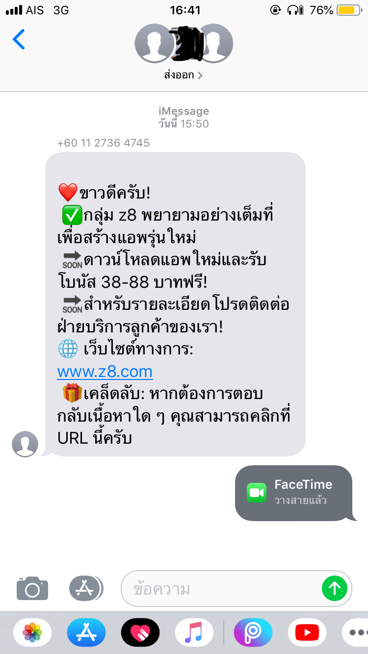 ได้ข้อความพวกคาสิโนผ่าน imessage แต่ไม่มีที่ให้กดออกจากกลุ่มค่ะ