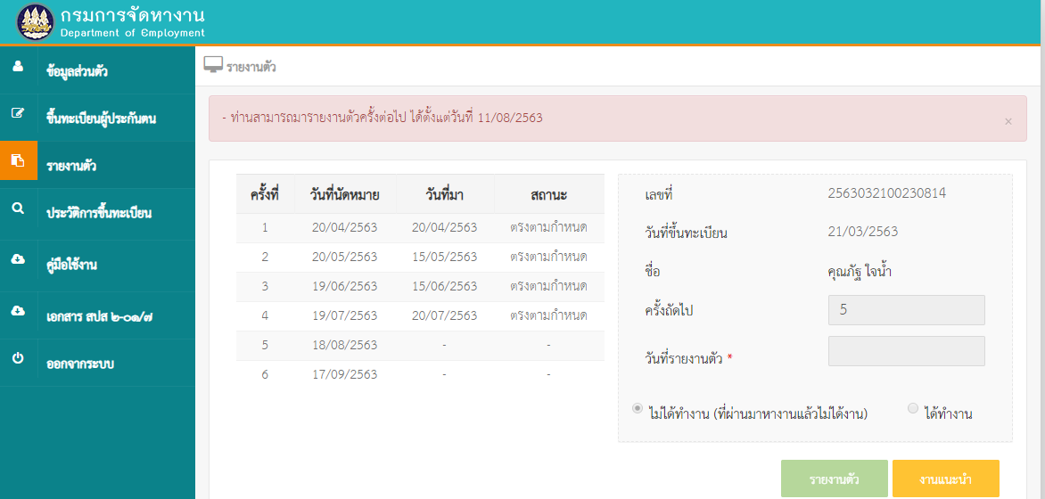 ผมรายงานตัวครั้งล่าสุดเมื่อวันที่ 20/07/2563 คับ