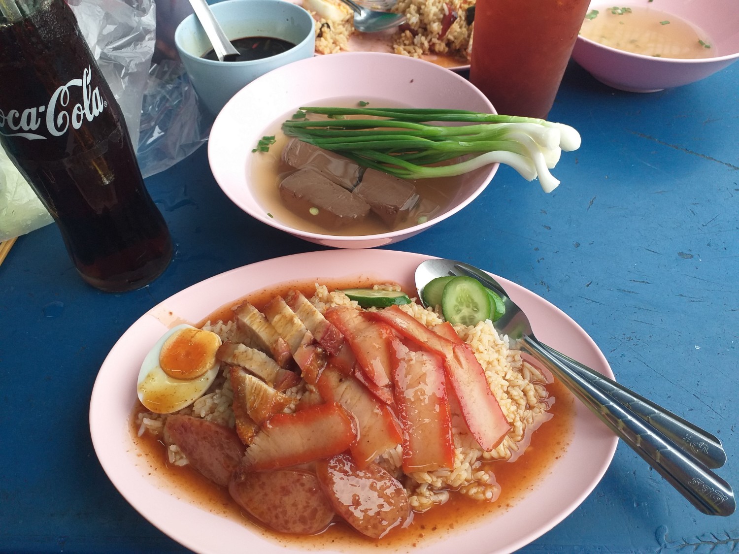 หมูราคาแพง ทั้งที่บอกเปนครัวโลก. แต่คุมราคาสินค้าไม่ได้ สองชายมากินข้าวหมูแดง 40 บาท หมูจะน้อยลง 1ชิ้นมั้ยนะ ลืมนับหมู