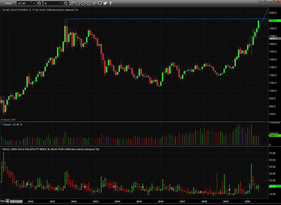 มีสาเหตุบางอย่างที่ทำให้เราเชื่อว่าทองคำจะวิ่งต่อ ดังที่เห็นในชาร์ตแท่งเทียนรายเดือนตั้งแต่ปี 2009 ความผันผวนของทองคำนั้นต่ำกว่าจุดสูงสุดก่อนหน้ามาก ปัจจุบัน GVX (Gold volatility index) หรือ ดัชนีความผันผวนของทอง อยู่ใกล้ 22 เมื่อเทียบกับประมาณ 40 ที่จุดเปลี่ยนก่อนหน้า. เมื่อราคาทองเทรนด์ขึ้นพร้อมมีกําลังมาสนับสนุน นักลงทุนรายย่อยจะตื่นตัวมากขึ้น ในขณะที่สภาทองคำโลกได้ศึกษาและพบว่า นักลงทุนได้ทำสถิติลงทุนในทองคำมูลค่ารวม 40 พันล้านเหรียญในช่วงหกเดือนแรกของปี 2020 อย่างไรก็ตามนี่ยังคงห่างไกลหากเทียบกับความตื่นเต้นที่เกิดในตลาดหุ้นในช่วงโควิด-19