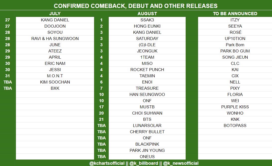 ✅ #KPOP ตารางวัน Comeback/Debut/ปล่อยเพลง ที่คอนเฟิร์มแล้ว