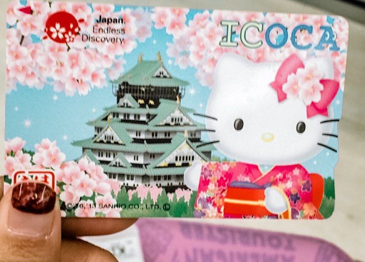 เพื่อซื้อบัตร Icoca เป็นบัตรเติมเงิน ไปถึงเจ้าหน้าที่ก็จะขอพาสพอร์ตเราไปดูด้วยก่อนซื้อ บัตรที่ได้มามีให้เลือกสามลายตอนเราไปตอนนั้นก็มีลายคิตตี้ด้วยนะ