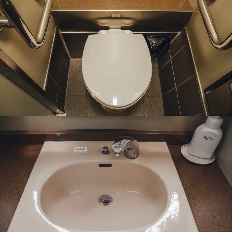 อีกฟากหนึ่งของขบวนรถไฟเป็นห้องน้ำซึ่งจะแบ่งเป็นสองฟากคือถ้าหันหน้าไปข้างหลังรถไฟฝั่งซ้ายของมือจะเป็นห้องน้ำ ฝั่งขวามือเป็นอ่างล้างมือ