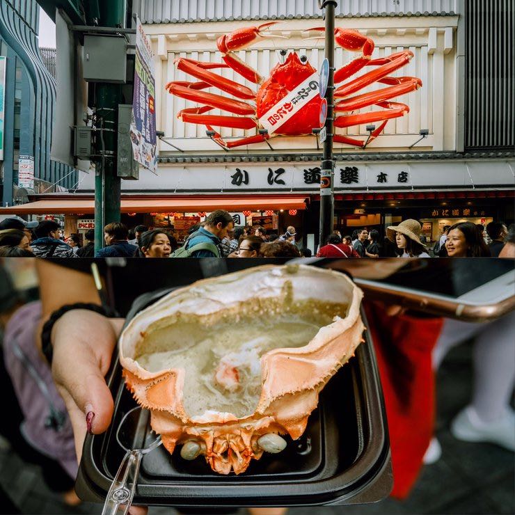 ร้านปูชื่อดัง โดดเด่นด้วยปูยักษ์ขนาดใหญ่ และด้วยทำเลที่ดีของร้านที่ไม่ไกลจากป้ายกูลิโกะบวกกับความสดใหม่ของปูร้านนี้ทำให้ไม่แปลกเลยที่จะเห็นคนต่อคิวกันยาว