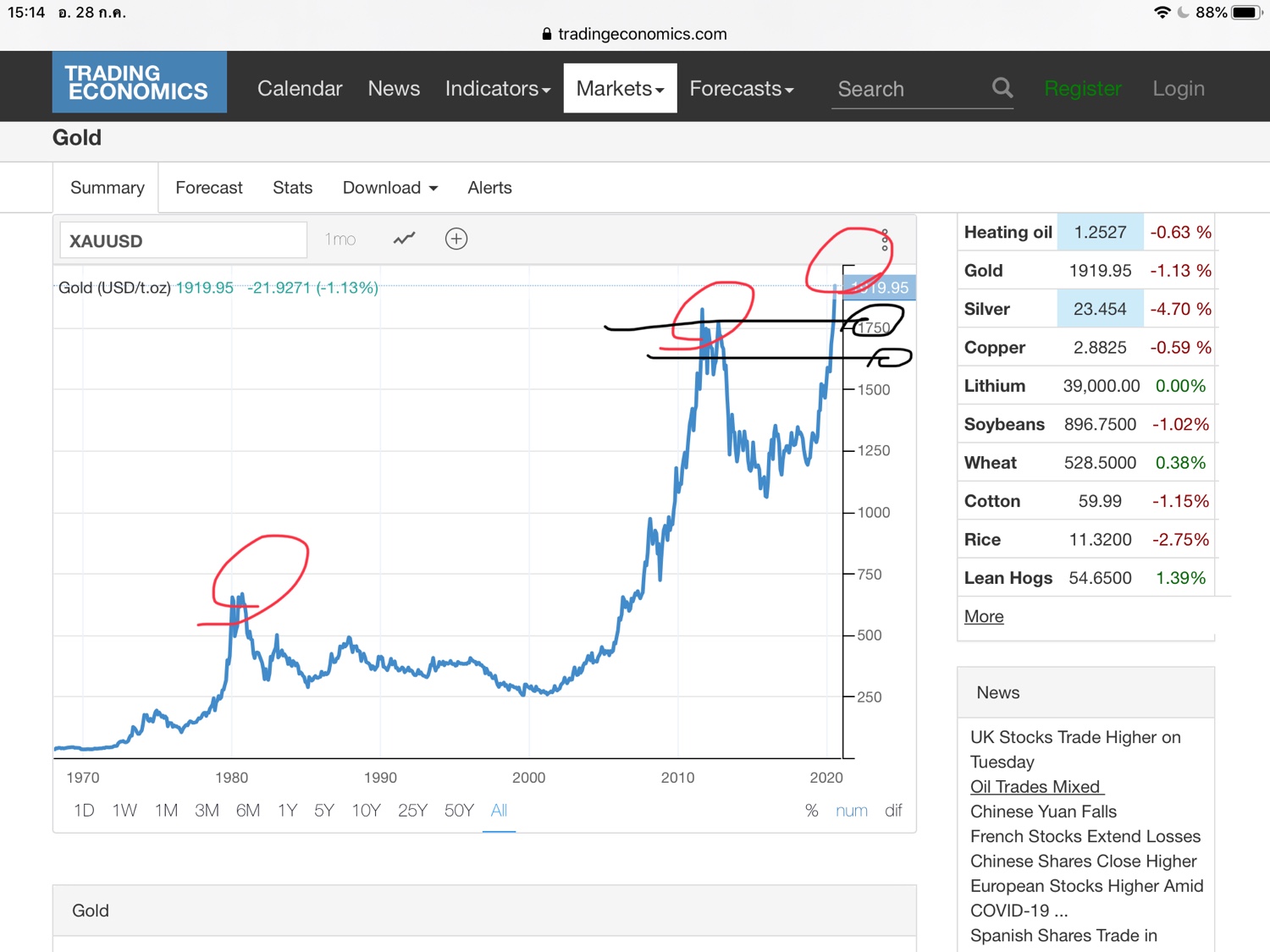 ทองน่าจะจบรอบขึ้นจากโควิด. แต่น่าจะคงทรงตัวระดับสูงได้แต่ทองมีแนวรับ 1650---1750