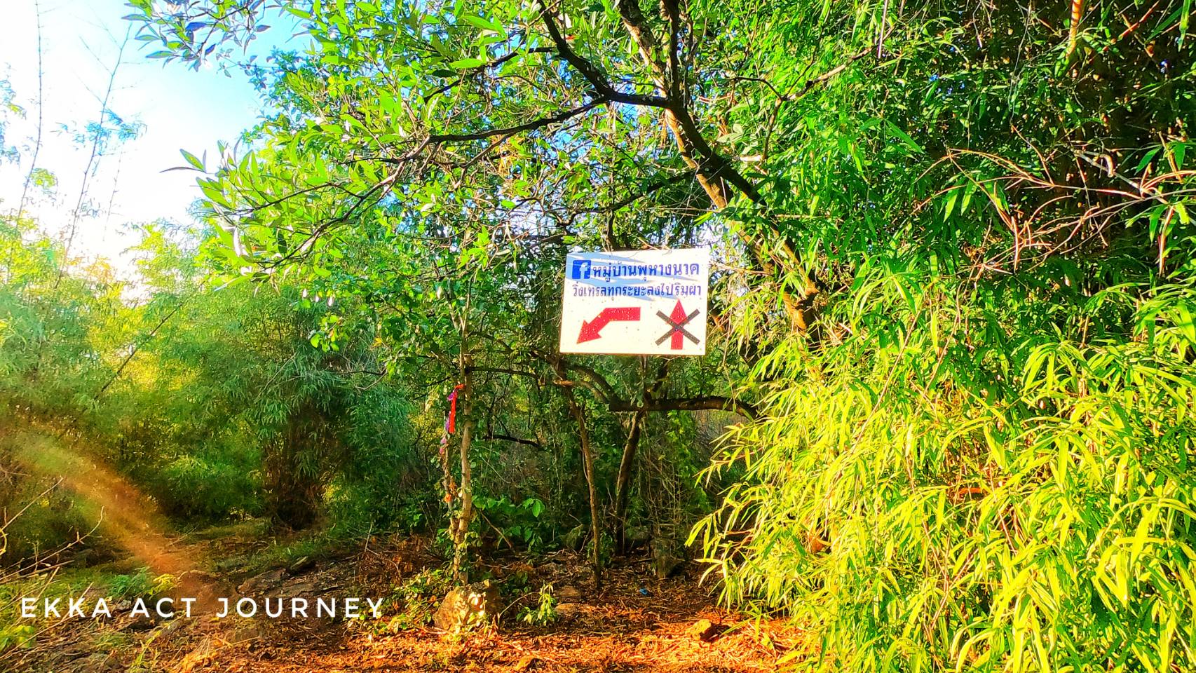 9. ข้างๆจุดชมวิว ไปต่อเลย รูเล็กๆข้างๆนั่นแหละ เดินไปตามริบบิ้น จะไปเจอสำนักสงฆ์ ช่วงนี้เป็นช่วงเคว้งอีกช่วง เพราะไม่มีริบบิ้นนะครับ ให้เดินไปแถบๆซ้ายมือ เดินลงบันได ลงเขาไปเลยจะเจอถนนครับ ข้างหน้าจะเขียนว่า สวนหินพุหางนาค