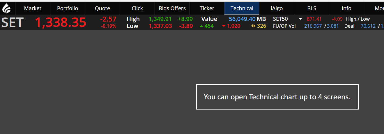 สอบถาม Steaming ขึ้น You can open Technical chart up to 4 screens.