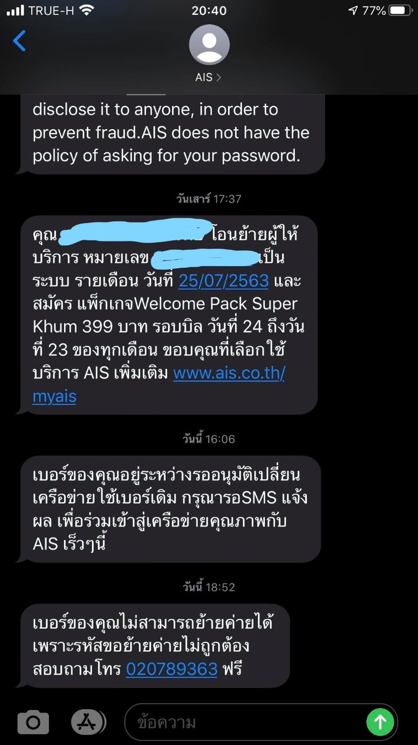 มีปัญหากับการย้ายค่ายเบอร์เดิมจาก True มา AIS ครับ