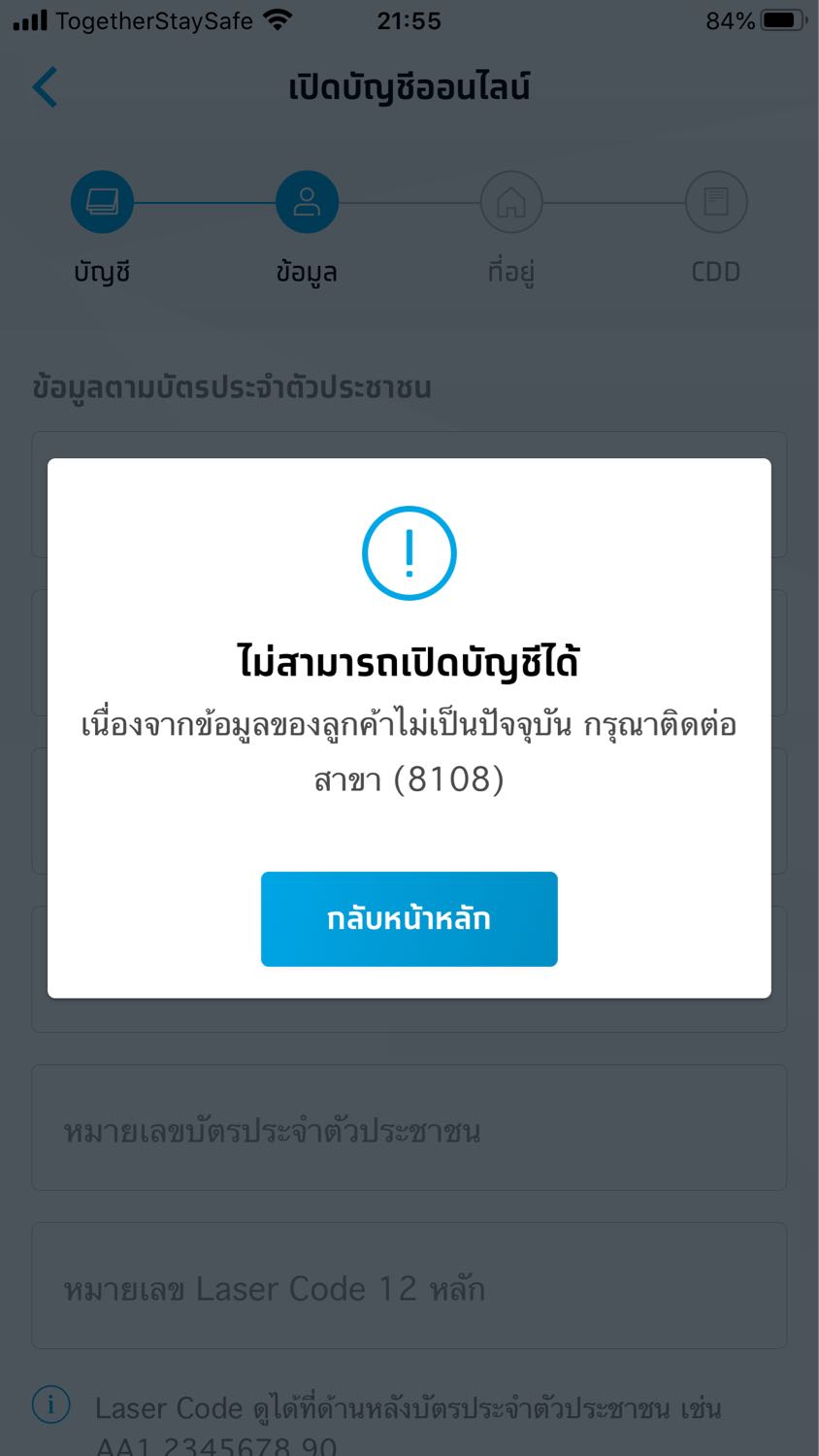 ไปยืนยันตัวตนที่ตู้แล้ว แต่เข้าไม่ได้ ขึ้น error ตลอด ต้องทำยังไงคะ