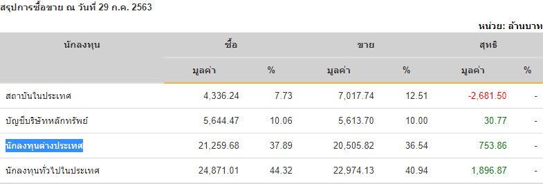 Sinthorn Summary 1/7/2563 : ต่างชาติซื้อสุทธิ 753.86 ลบ.
