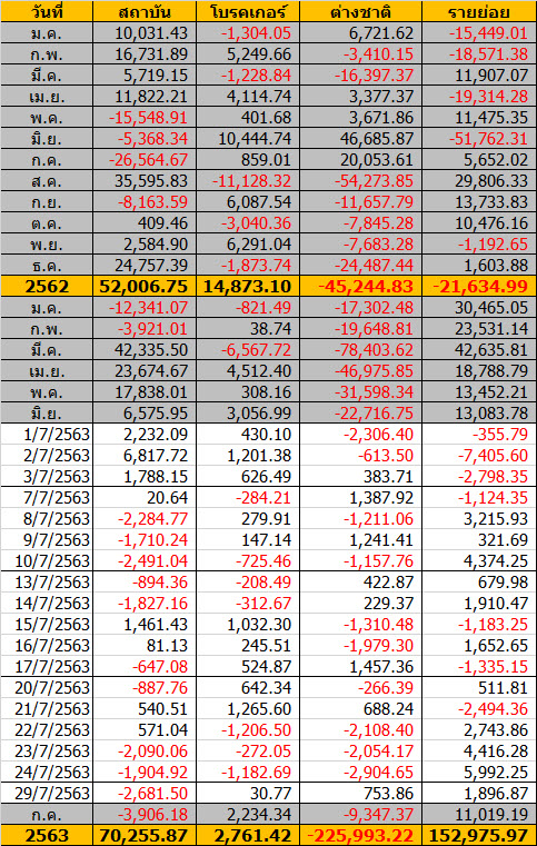 Sinthorn Summary 7/1/2563 : ต่างชาติซื้อสุทธิ 820.05 ลบ.