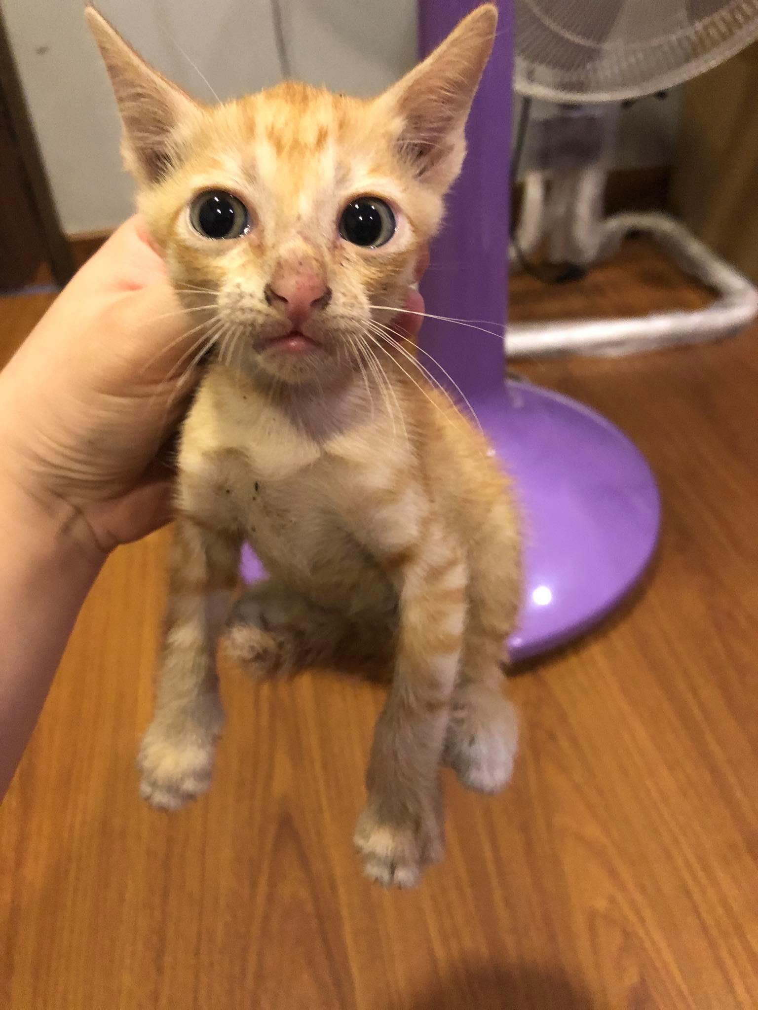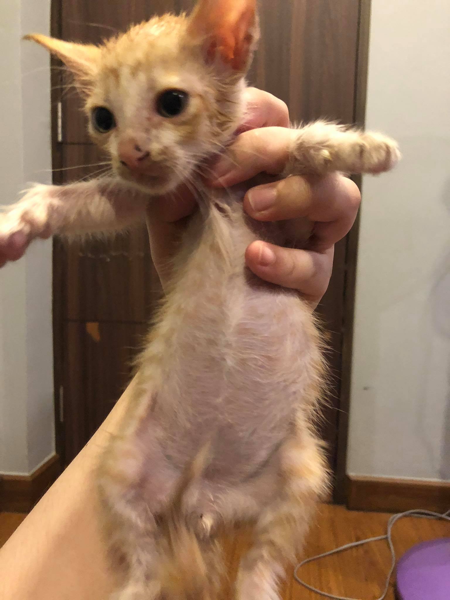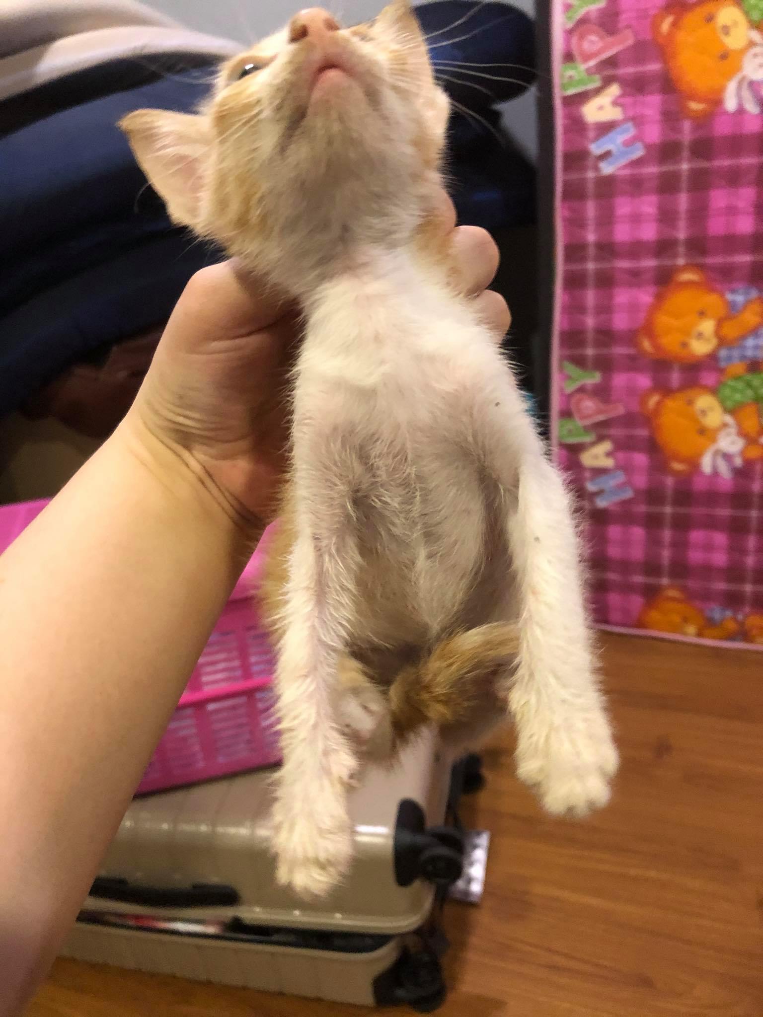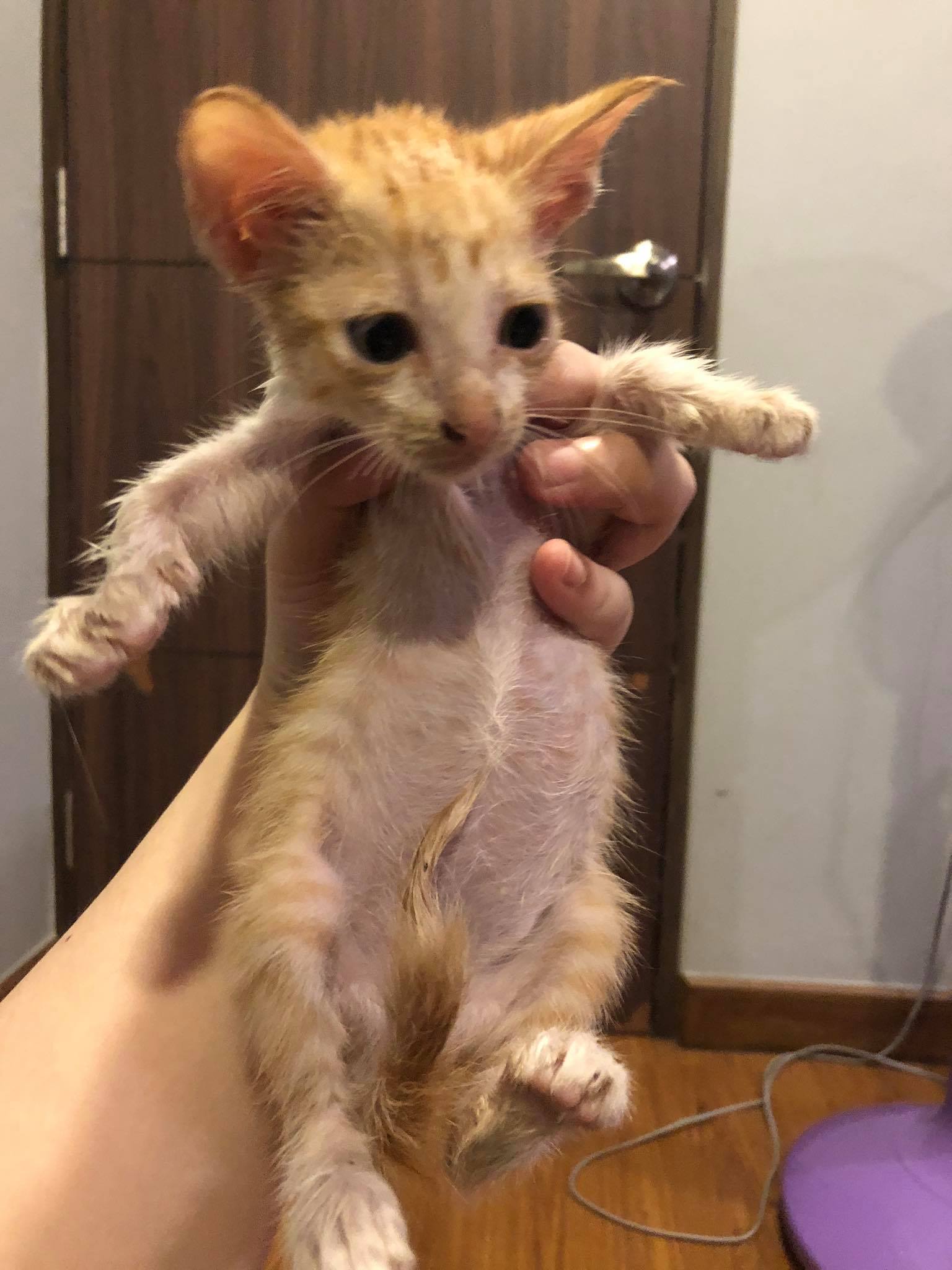 น้องเเมวส้ม อายุน่าจะไม่ถึง2week เจอในสภาพ ผิวหนังขนเหมือนจะเป็นก้อน มีหมัดมีเเมลง มีตัวอะไรไม่รู้ ขนาดพริกไทยปนได้ สีดำ ลองเอาเล็บบีดดู เสียงดังเเป๊ก ก็จะมีดินทรายติดเลอะเทอะไปหมด มีหมัดมีมดกัดตาม