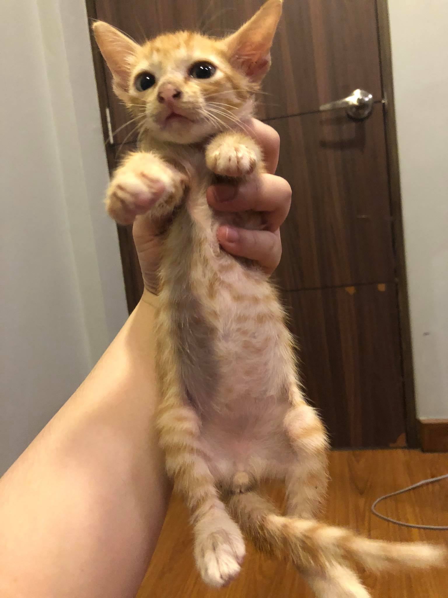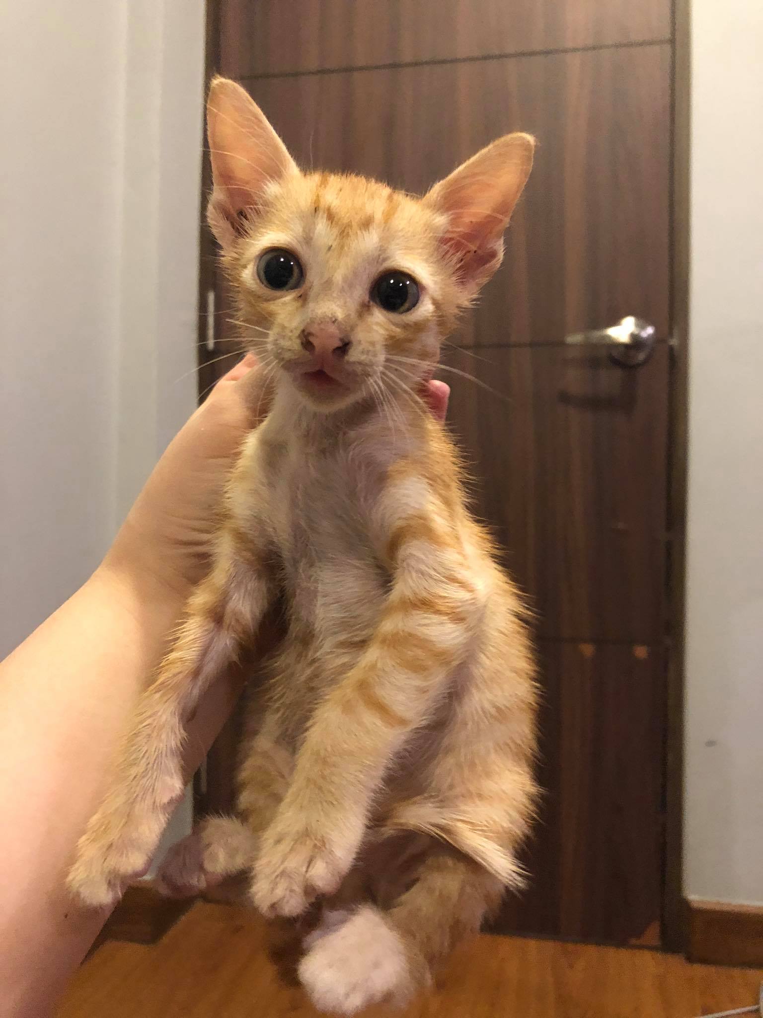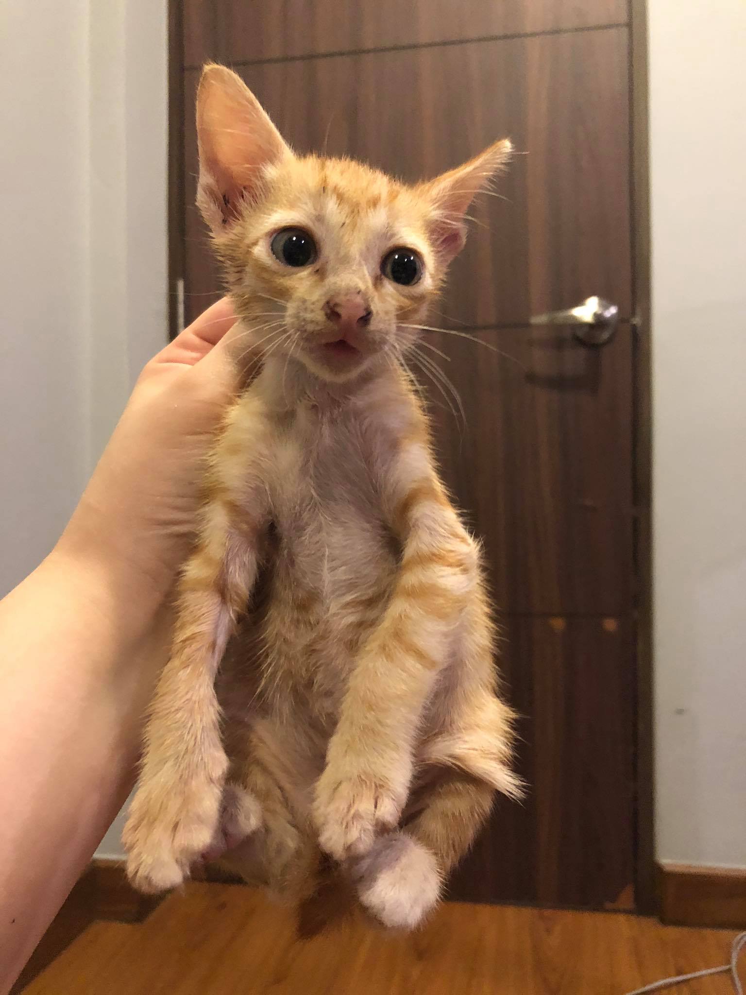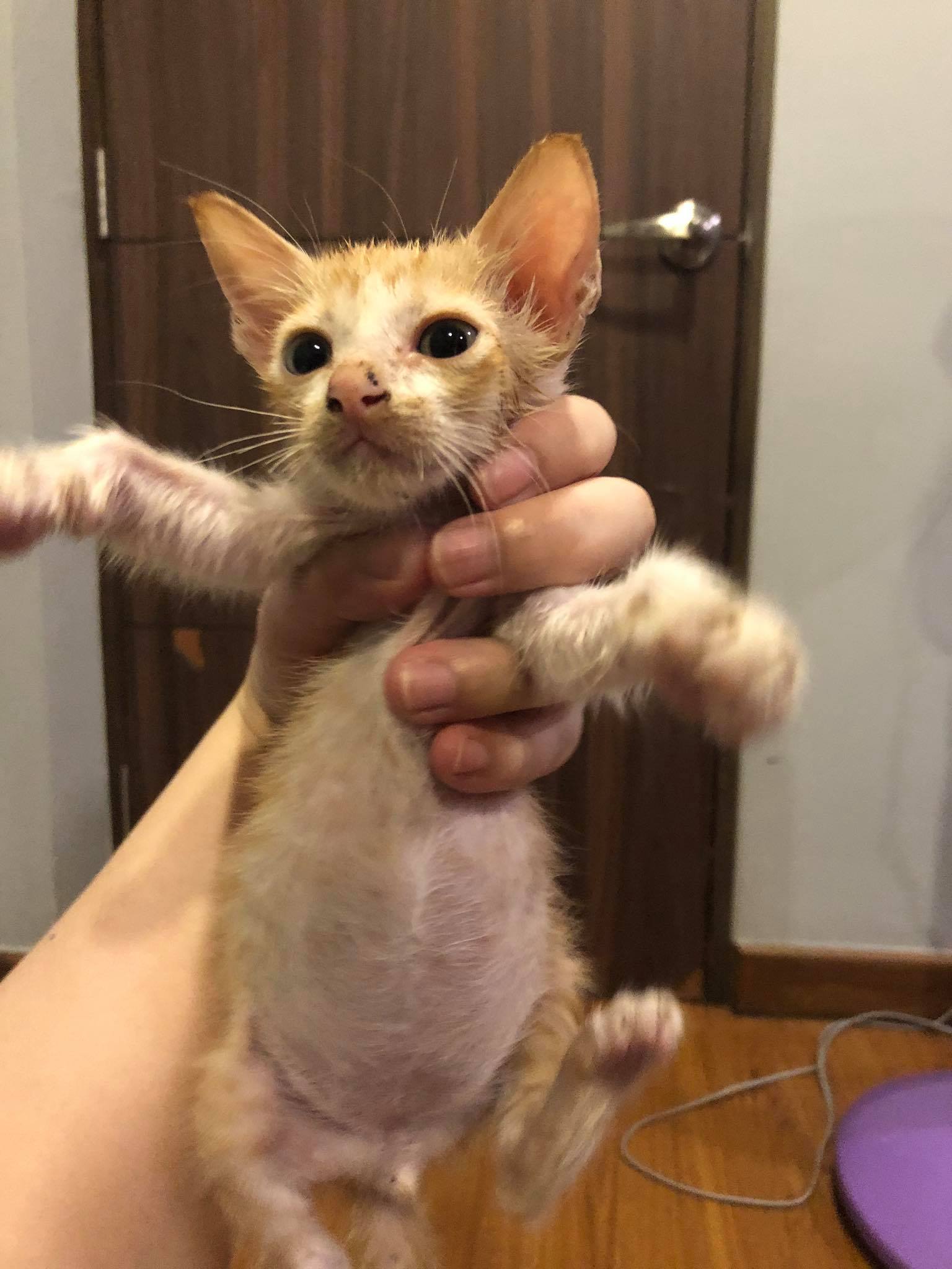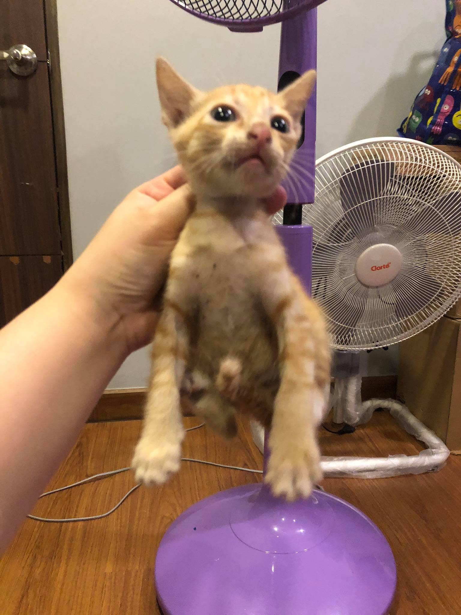 น้องเเมวส้ม อายุน่าจะไม่ถึง2week เจอในสภาพ ผิวหนังขนเหมือนจะเป็นก้อน มีหมัดมีเเมลง มีตัวอะไรไม่รู้ ขนาดพริกไทยปนได้ สีดำ ลองเอาเล็บบีดดู เสียงดังเเป๊ก ก็จะมีดินทรายติดเลอะเทอะไปหมด มีหมัดมีมดกัดตาม