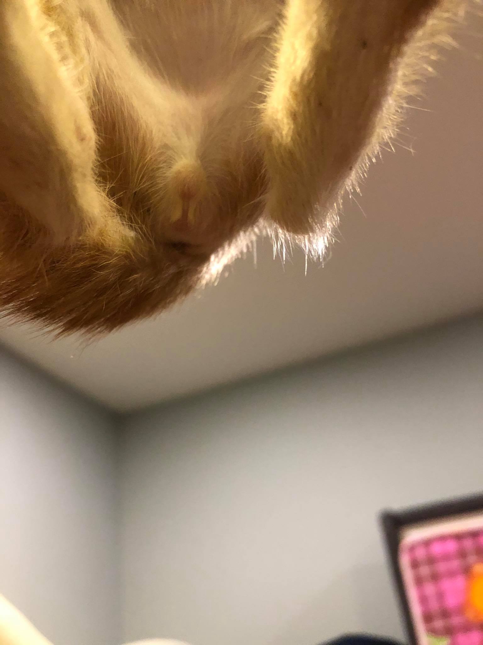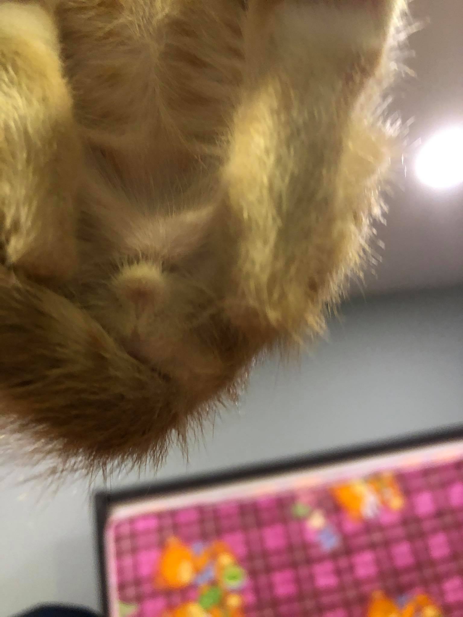 ทองแต้ม เพศเมียทำหมันแล้ว อายูประมาณ10ปี ไม่แน่ใจ รับมาจากเพื่อนอีกที เพราะเขาเลี้ยงไม่ไหว ทองแต้มเป็นแมววัดนะ อ้วน ลายวัว ขี้อ้อน เราเพิ่งพาไปตรวจสุขภาพ มีค่าไต2.57 ผลตรวจอย่างอื่นไม่เกินเกณฑ์ หมอบอก