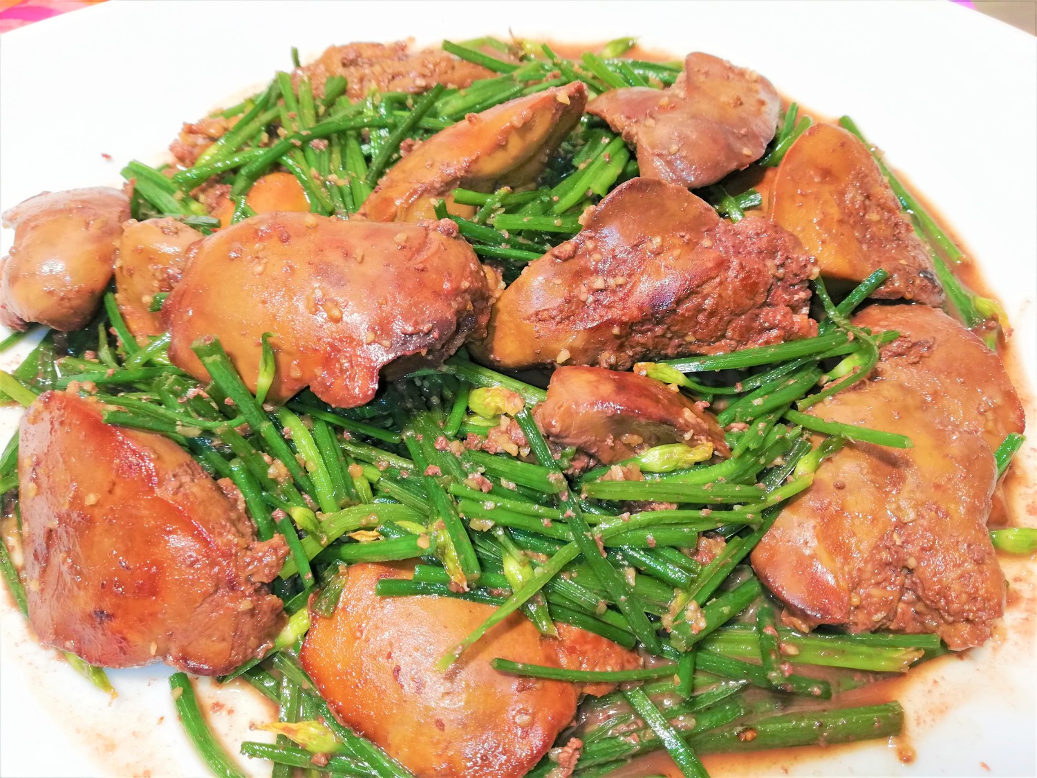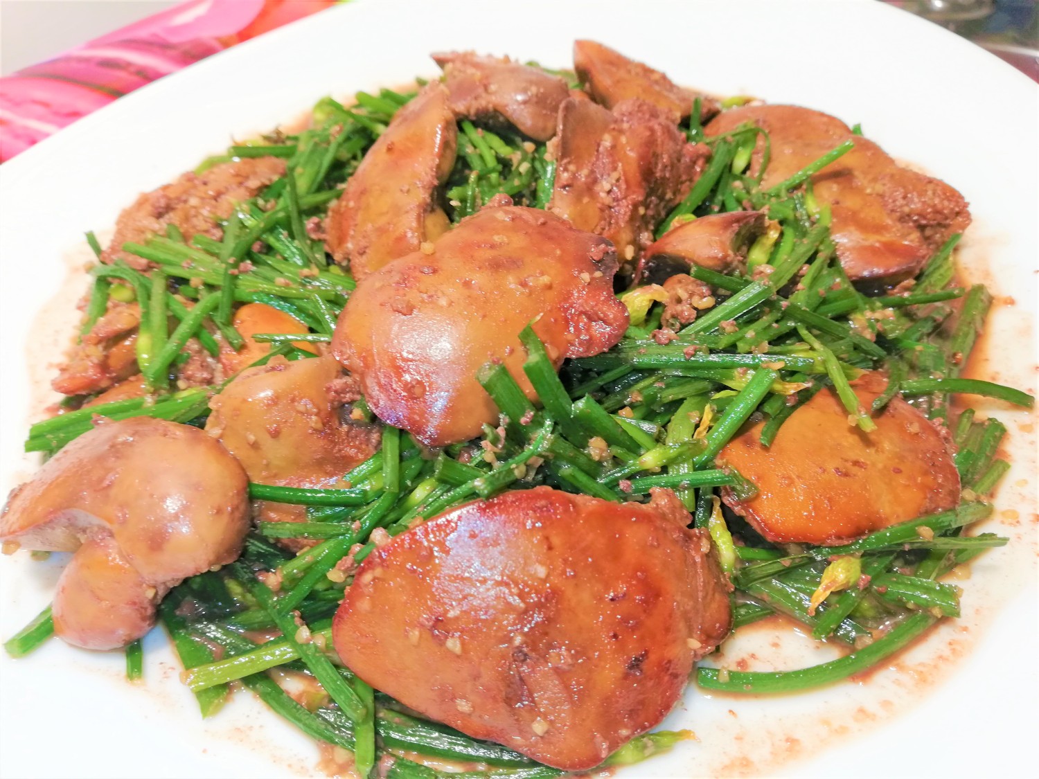 👉ผัดดอกกุยช่ายใส่ตับไก่