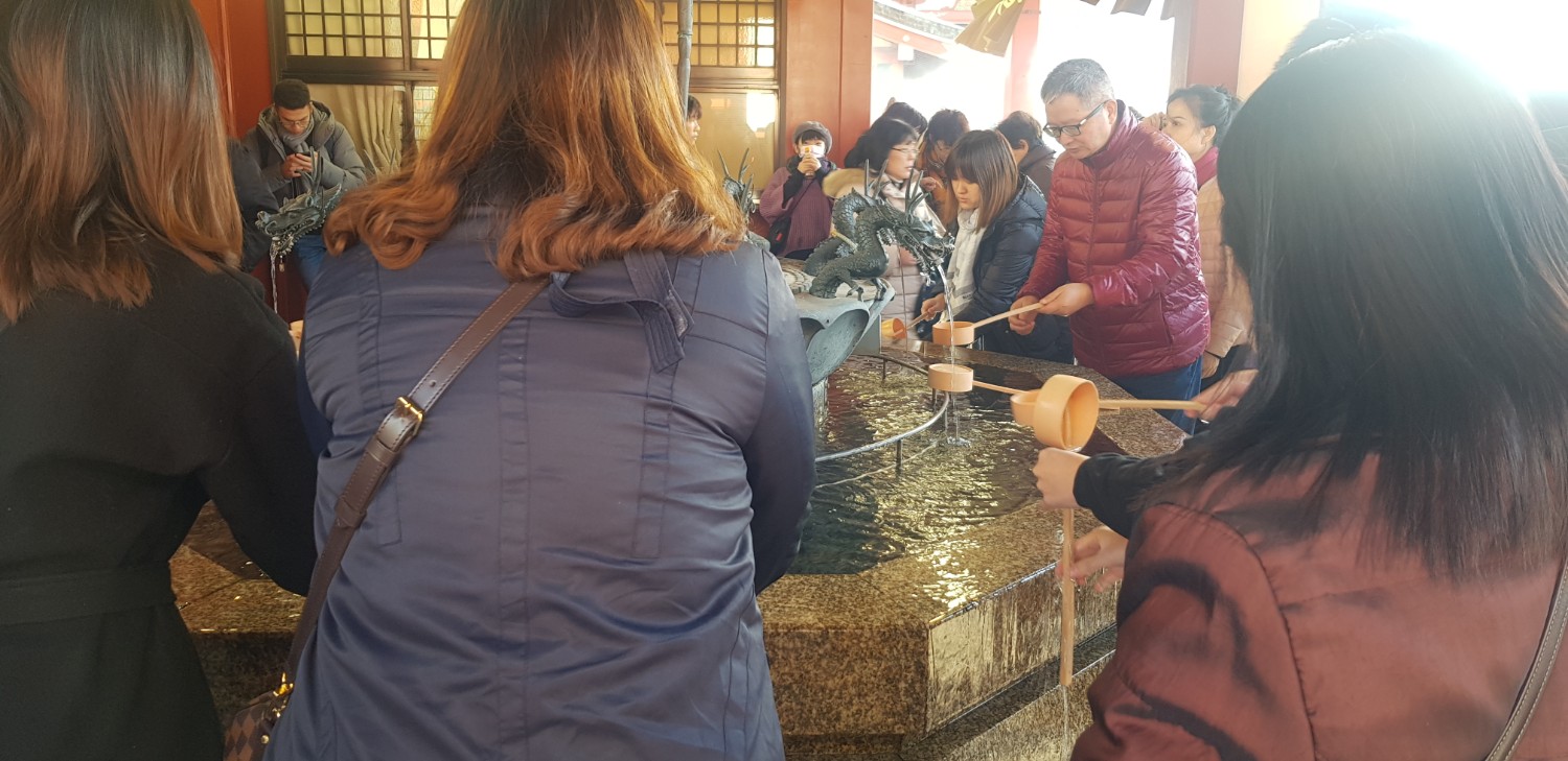ชำระล้างตามธรรมเนียมก่อนไหว้พระที่วัดเซนโซจิ หรือ วัดอาซากุสะ บอกเลยว่าตอนนั้นเสียใจเล็กๆ ที่ทำ เพราะน้ำเย็นมาก เหมือนเหมือนจะขาด ยิ่งลมพัดตึ้งแล้วยิ่งเลวร้าย มือชาหนักมาก กรี๊ด 5555555