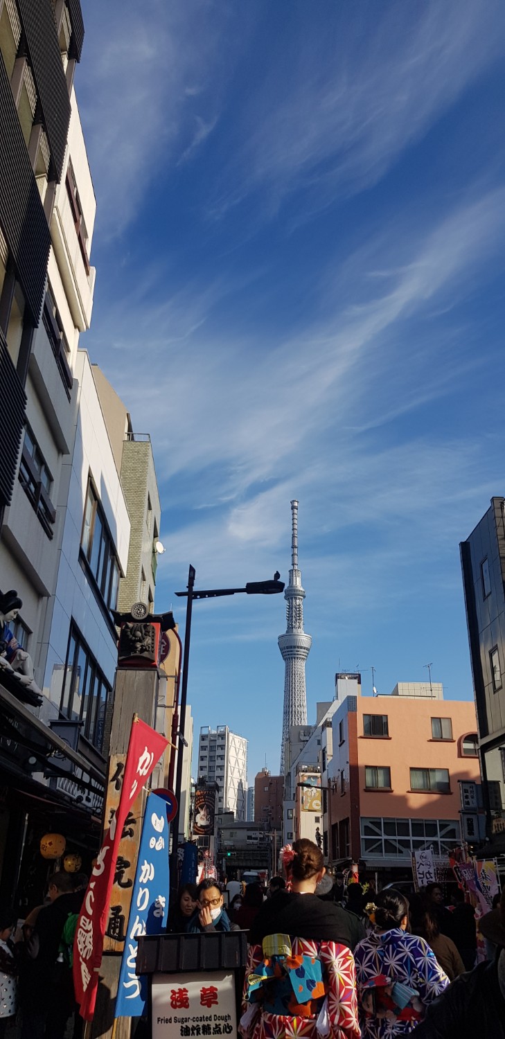 กำลังเดินไปยังวัดอาซากกุสะะ อากาศเย็นสบายมาก แม้จะอยู่กลางเมือง ก็ยังรู้สึกว่าอากาศสะอาดหมดจดสดชื่นไปหมด