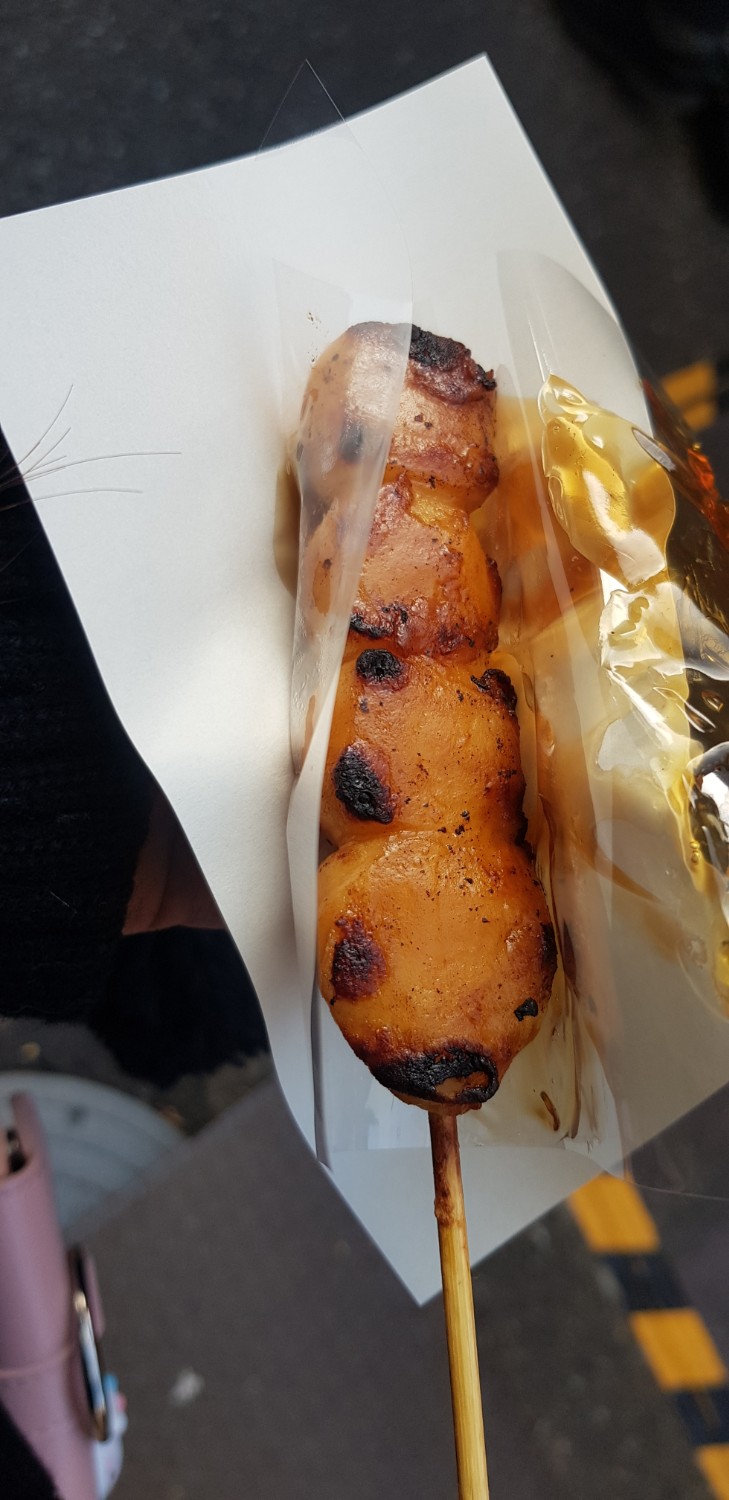 เพิ่งเคยทานครั้งแรก ดังโงะย่าง ซื้อมาสองไม้ หวานกับเค็ม รสชาติเหมือนแป้งย่างราดน้ำมันหอยหวานๆ