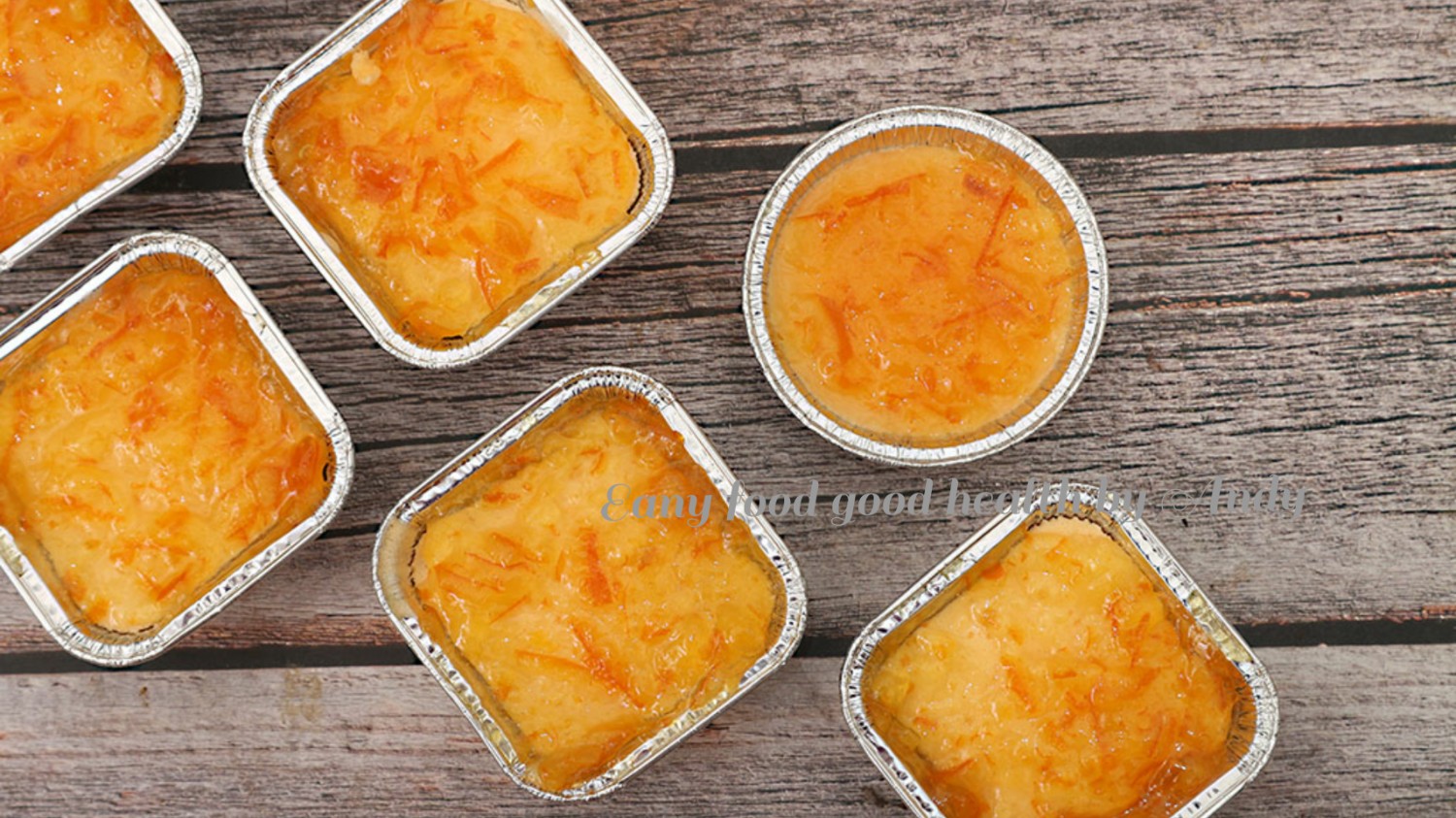 5.นำออกจากเตาอบตักแยมส้มราดด้านบน แช่ตู้เย็นเก็บไว้ทาน