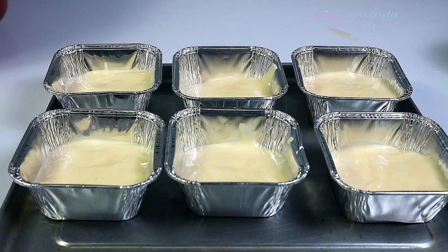 4.ตักใส่พิมเกือบเต็ม นำเข้าเตาอบก่อนหน้านี้ให้วอร์มเตาอบไว้ประมาณ10นาที