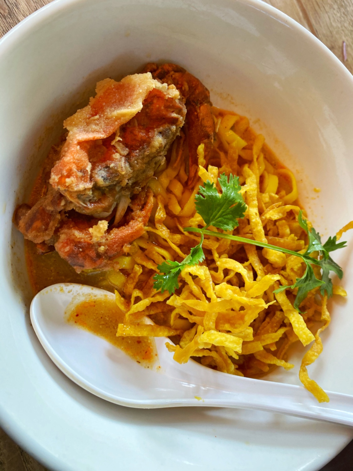 ทานข้าวเย็นกันที่ “ข้าวซอยนิมมาน” ร้านอยู่ที่ นิมมานซอย 7 ตรงเข้าไปร้านอยู่ขวามือ ที่นี่ค่อนข้างต้นตำรับเลยรสชาตดีงามมากค่ะ น้ำเข้มข้นหอมเครื่องแกง. ที่เราเลือกทานวันนี้ ขอแนะนำ ข้าวซอยปูนิ่มคืออร่อยมากและเนื้อปูคือมาเต็ม แนะนำว่าเด็ดต้องไปลอง😚