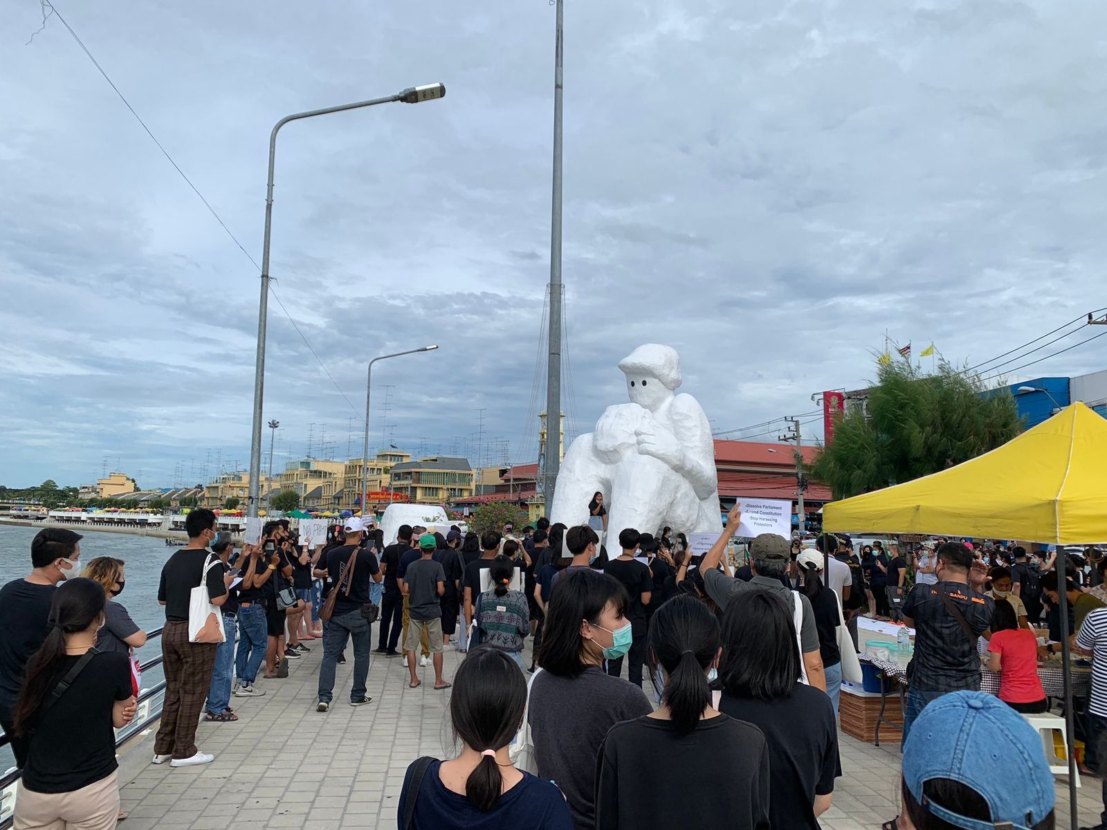 #ราชบุรีขอตีกับ [เผล่ะจัง] ใช้สวมใส่เสื้อสีดำ บริเวณลานกิจกรรม ริมแม่น้ำแม่กลอง เพื่อย้ำ 3 ข้อเรียกร้องของการเคลื่อนไหวเยาวชนปลดแอก
