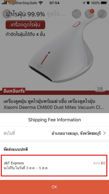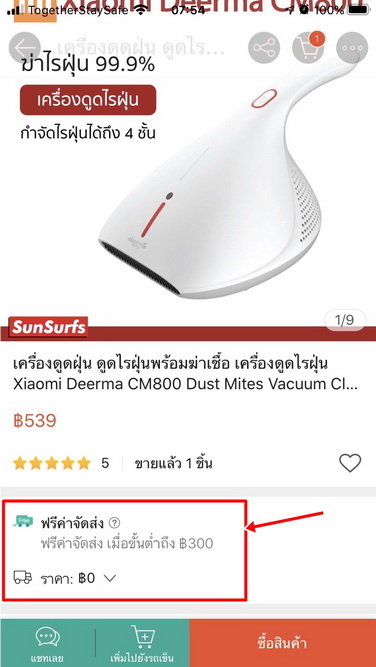 เช่นอันนี้ครับ จะสั่งเครื่องดูดไรฝุ่น ตอนแรกเข้าไปดู เห็นบอกว่าค่าจัดส่งฟรีเมื่อซื้อขั้นต่ำ 300 บาท