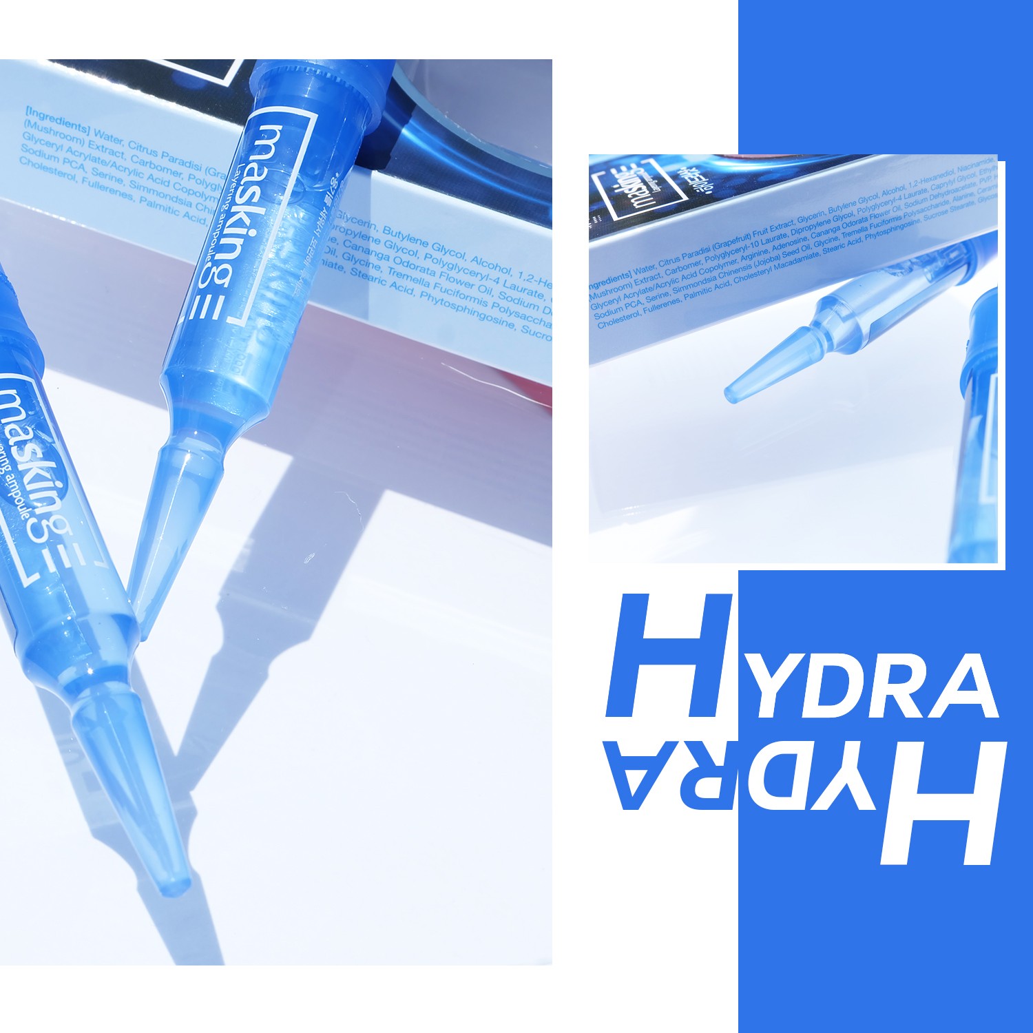 - สีฟ้า Hydra : ปรับสมดุลความชุ่มชื้น ฟื้นผิวอิ่มฟู สดใส และดูเด้ง