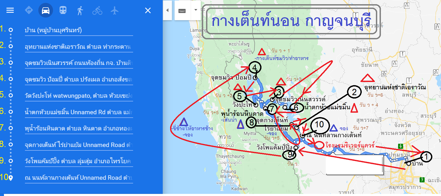 แผนกางเต็นท์ ที่ กาญจนบุรี
