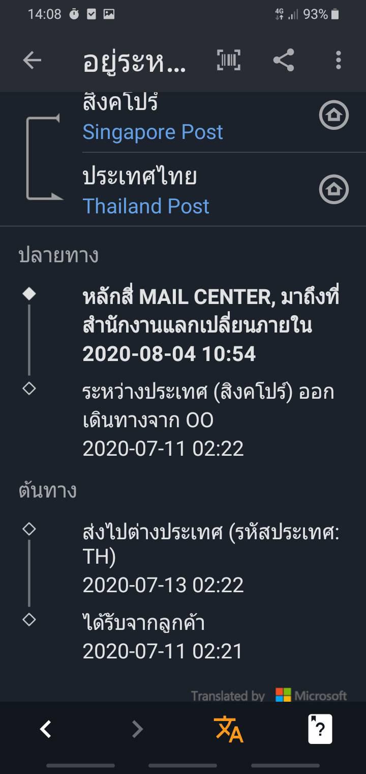 ขอถามเป็นความรู้ครับ พัสดุออกจากสิงค์โปร-15/7/20 ถึง ศป.หลักสี่-4/8/20 "20วัน แสดงว่ามาทางรถใช่หรือไม่ครับ"